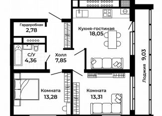 Продажа двухкомнатной квартиры, 63.8 м2, улица Долголетия, 2к2