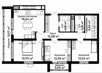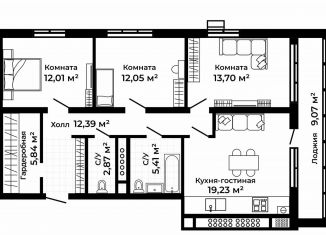 3-ком. квартира на продажу, 88.1 м2, улица Благополучия, 2к1