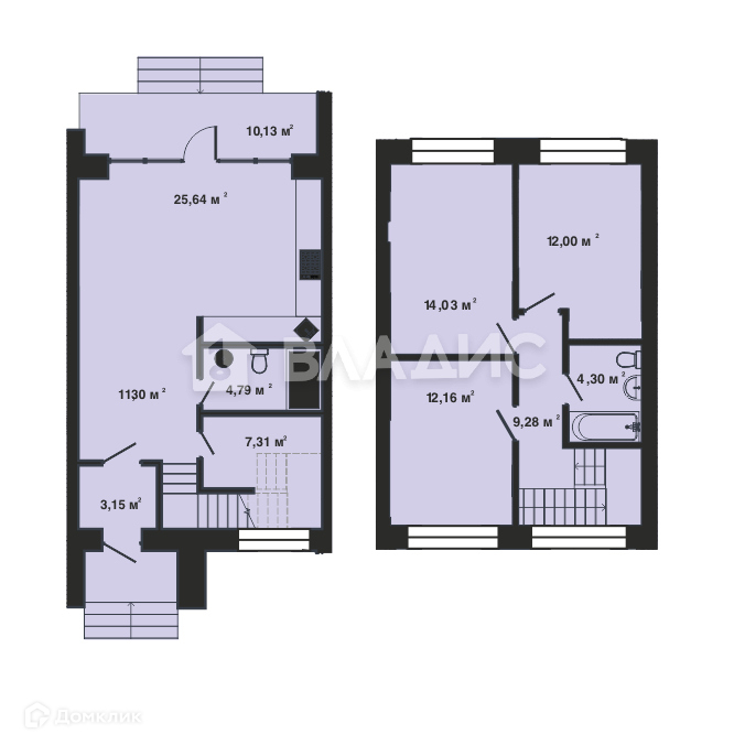 санузел на 1-м этаже и большая ванная на 2-м;