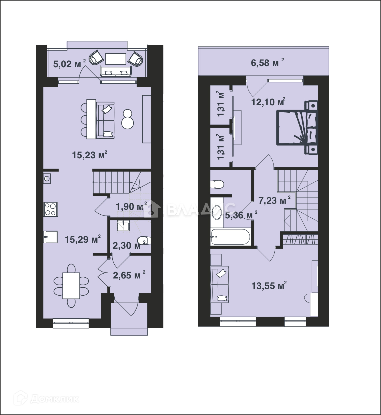 санузел на 1-м этаже и большая ванная на 2-м;