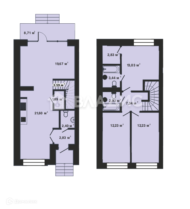 санузел на 1-м этаже и большая ванная на 2-м;