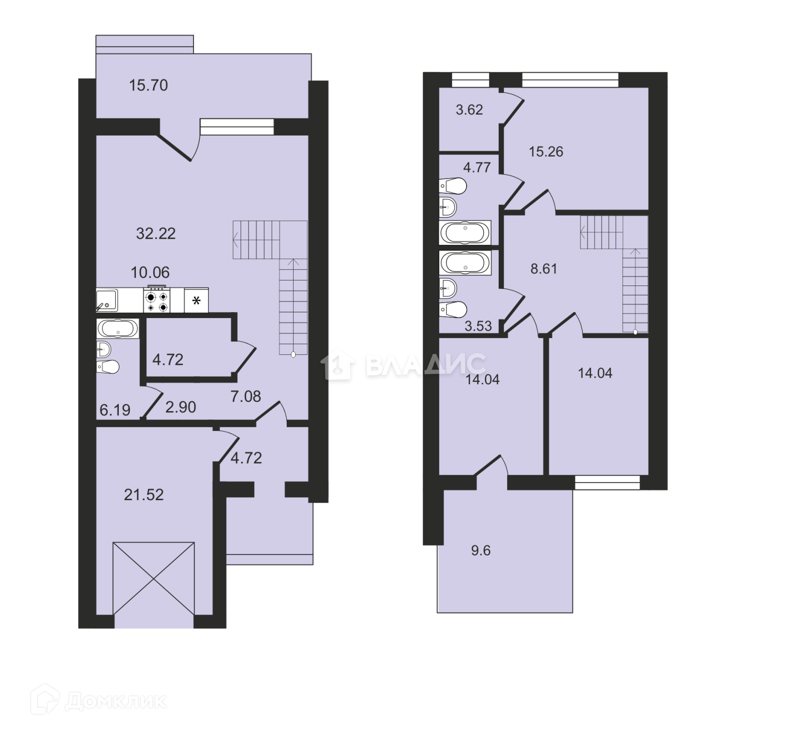 санузел на 1-м этаже и большая ванная на 2-м;