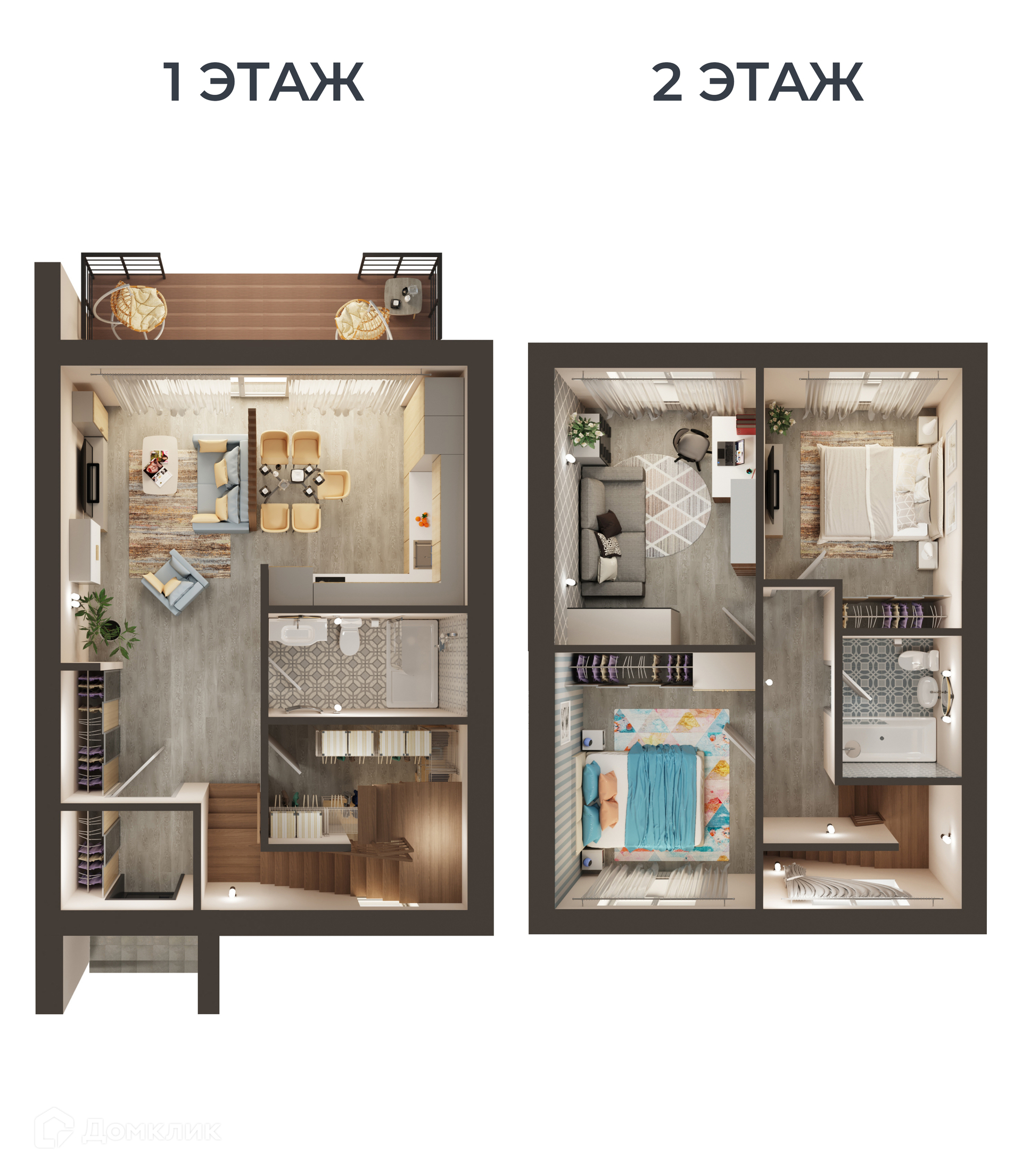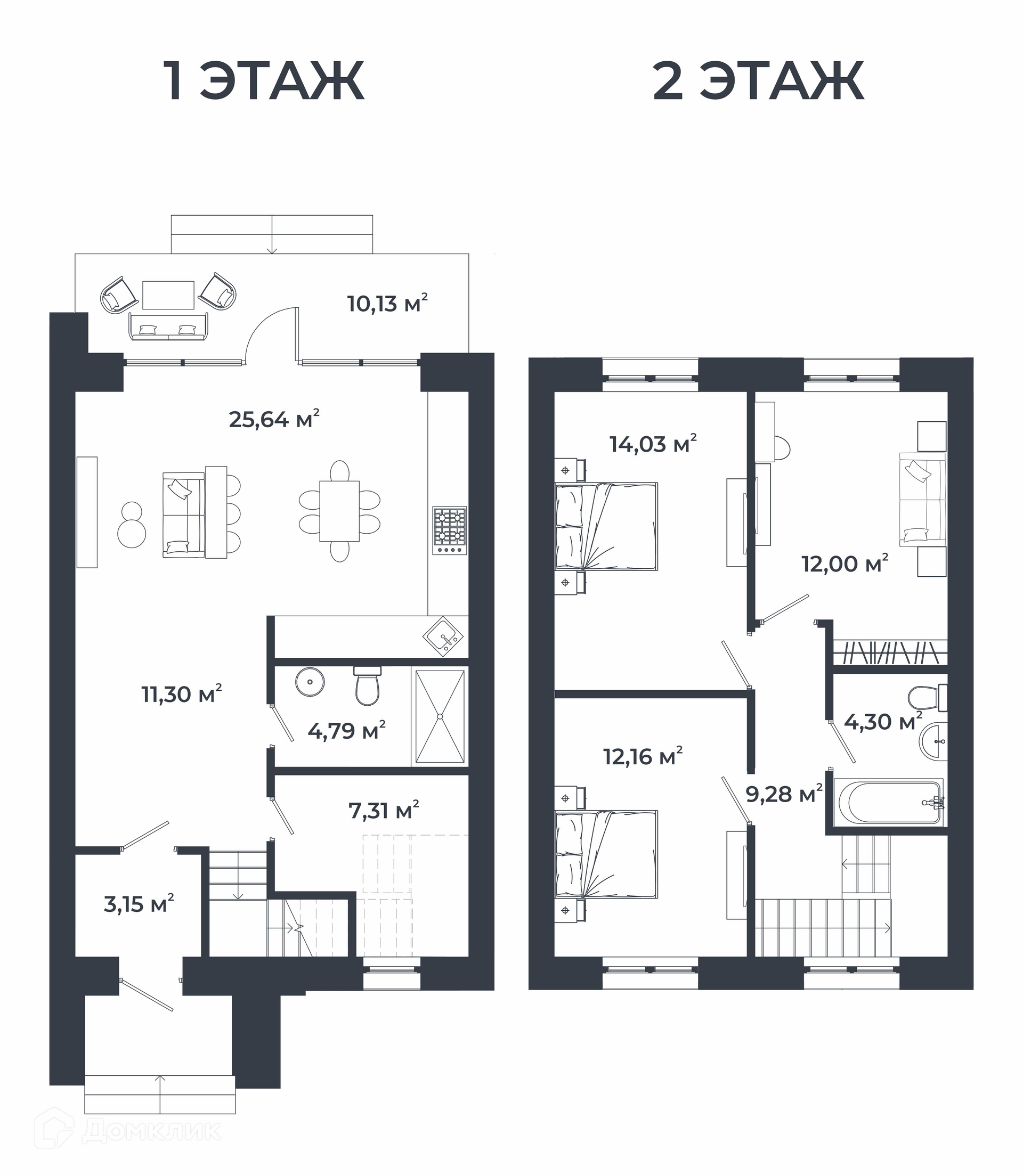 - ванные комнаты на обоих этажах,