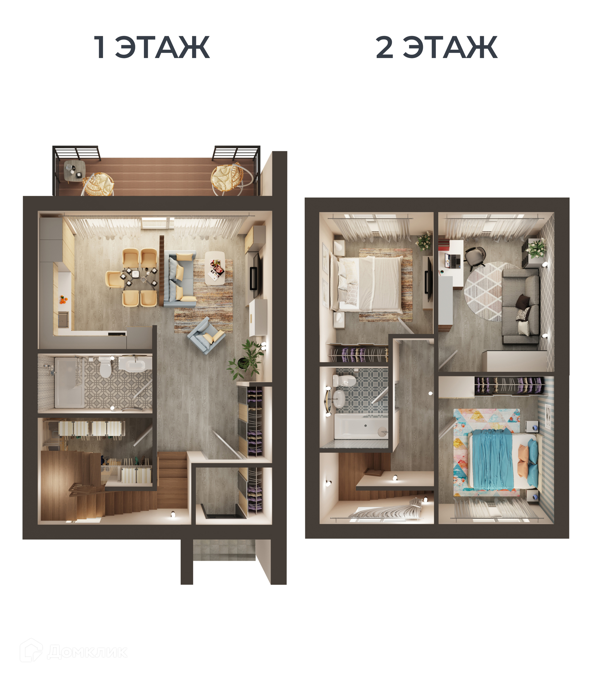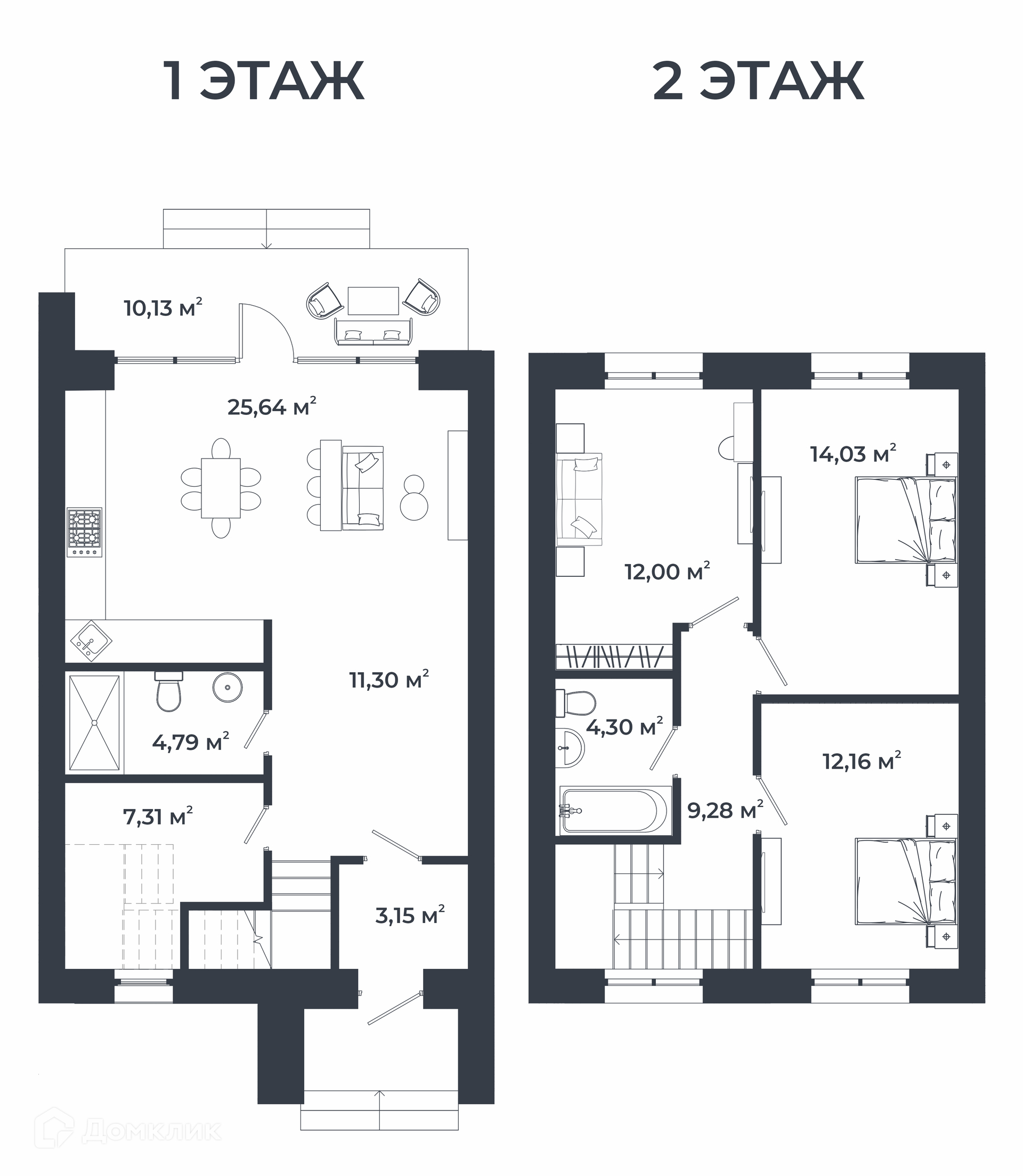- ванные комнаты на обоих этажах,