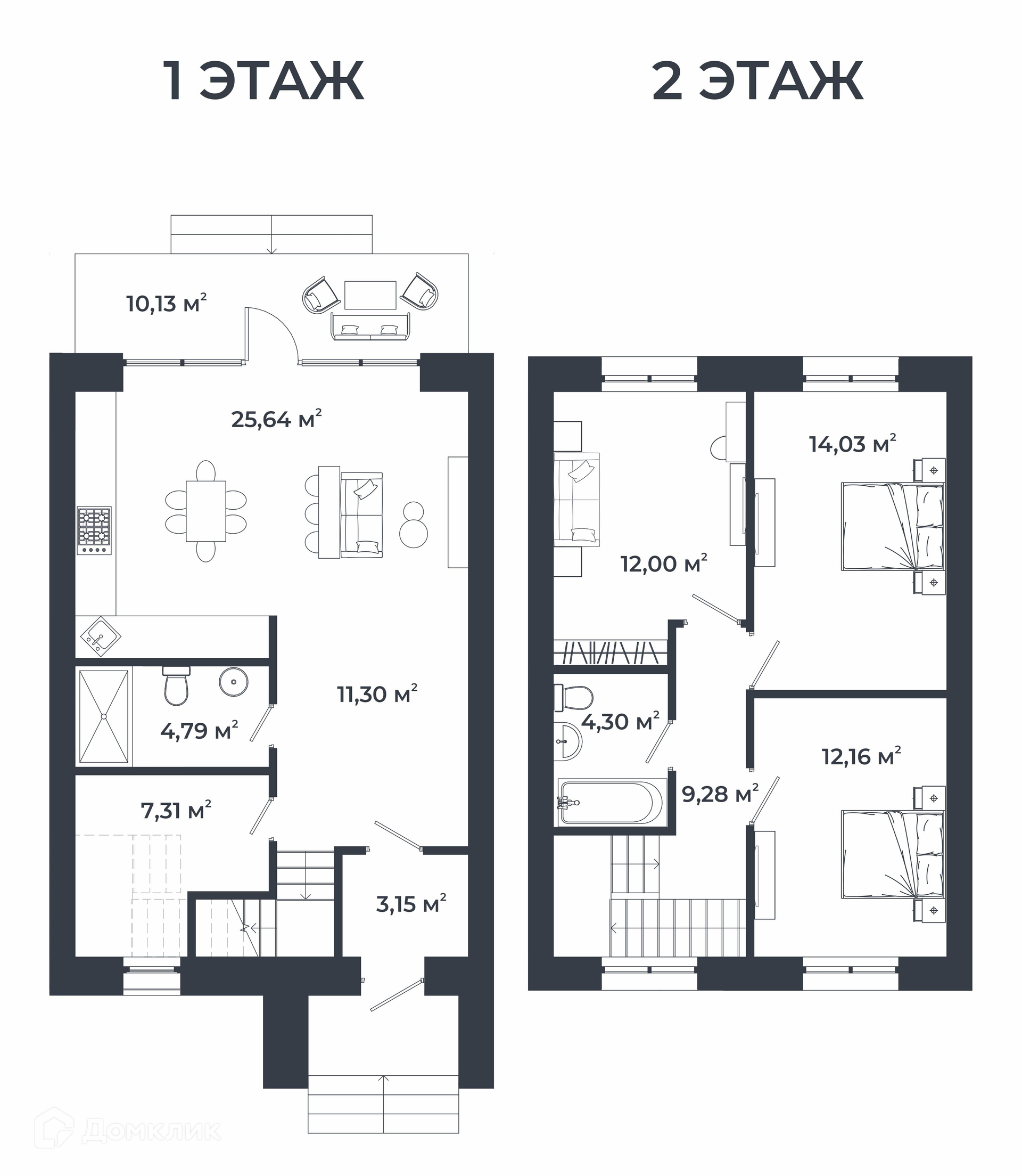- ванные комнаты на обоих этажах,