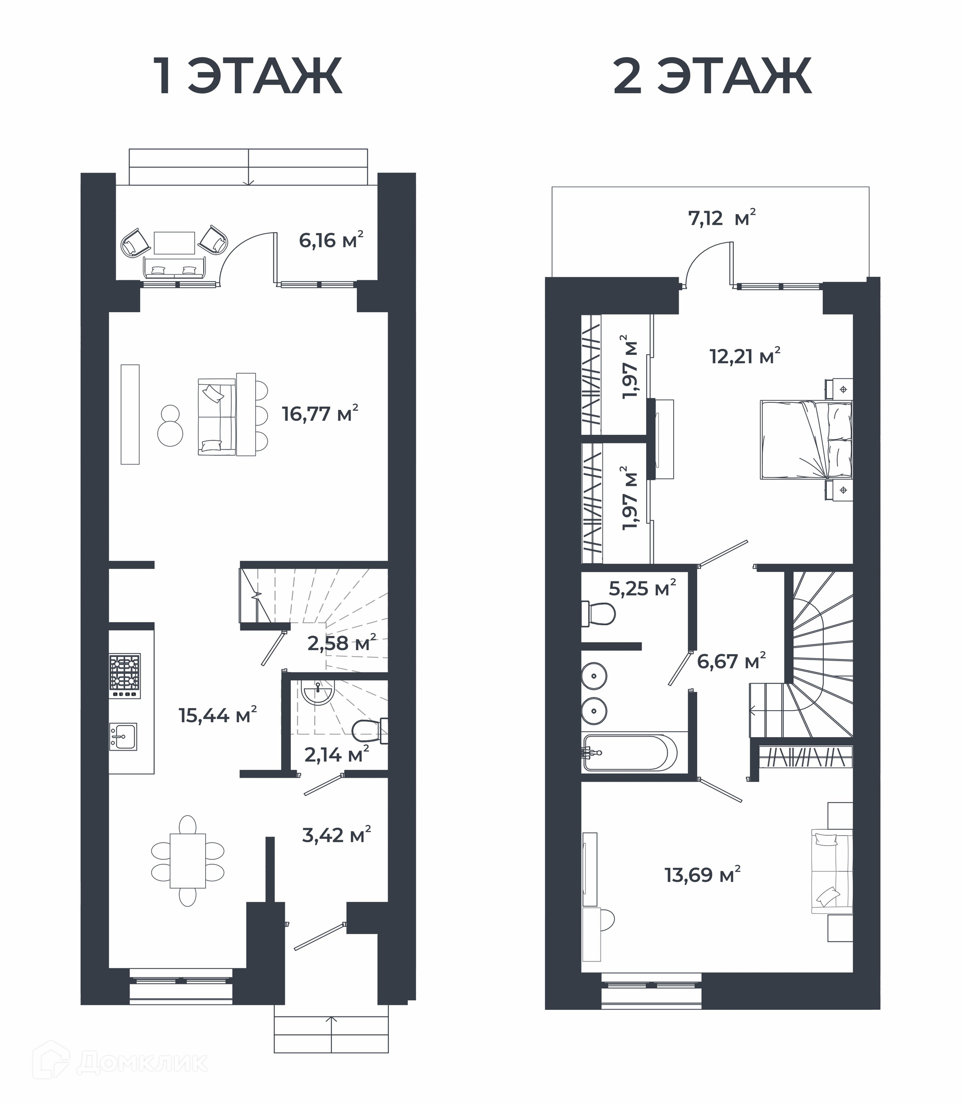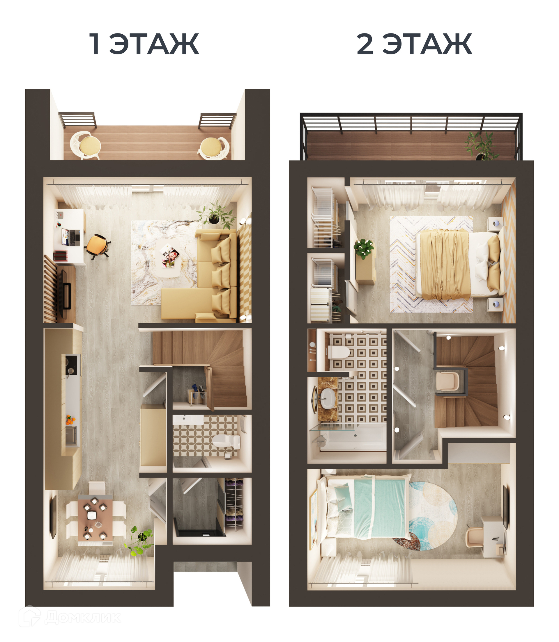 - гостевой санузел на первом этаже и большая ванная на втором;