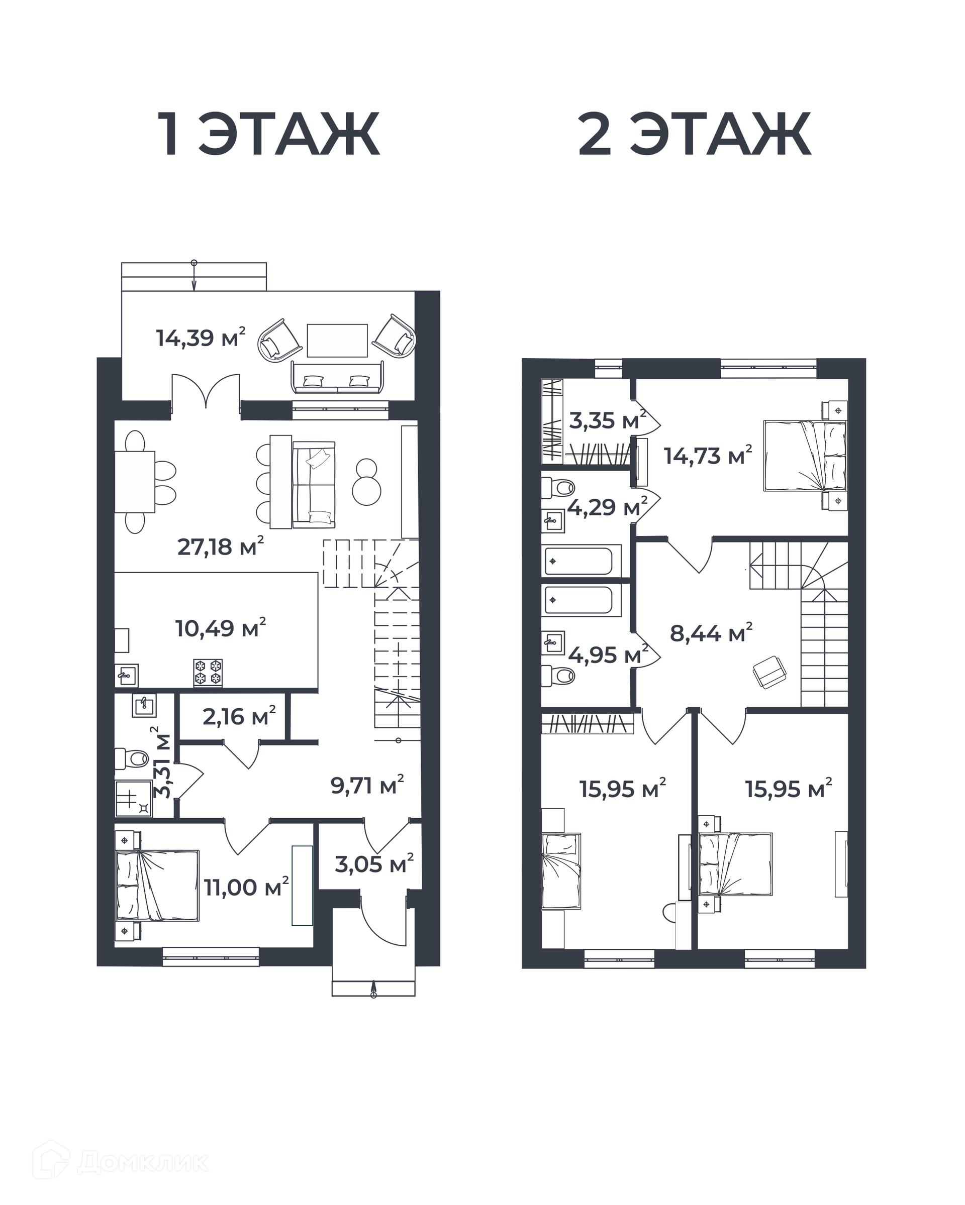 2-этажный таунхаус, 137.1 м2, на продажу в посёлке Доброград, Славянская улица