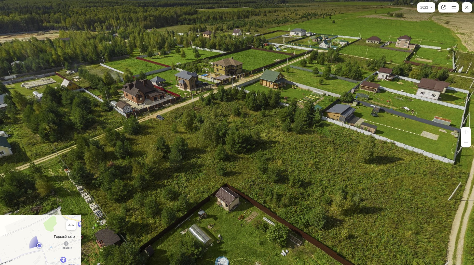 Площадь участка позволяет разделить его пополам при желании, а также возвести хоз. постройки - банный комплекс, теплицы, гараж для снегохода и квадроцикла (лес за забором, сел и поехал).