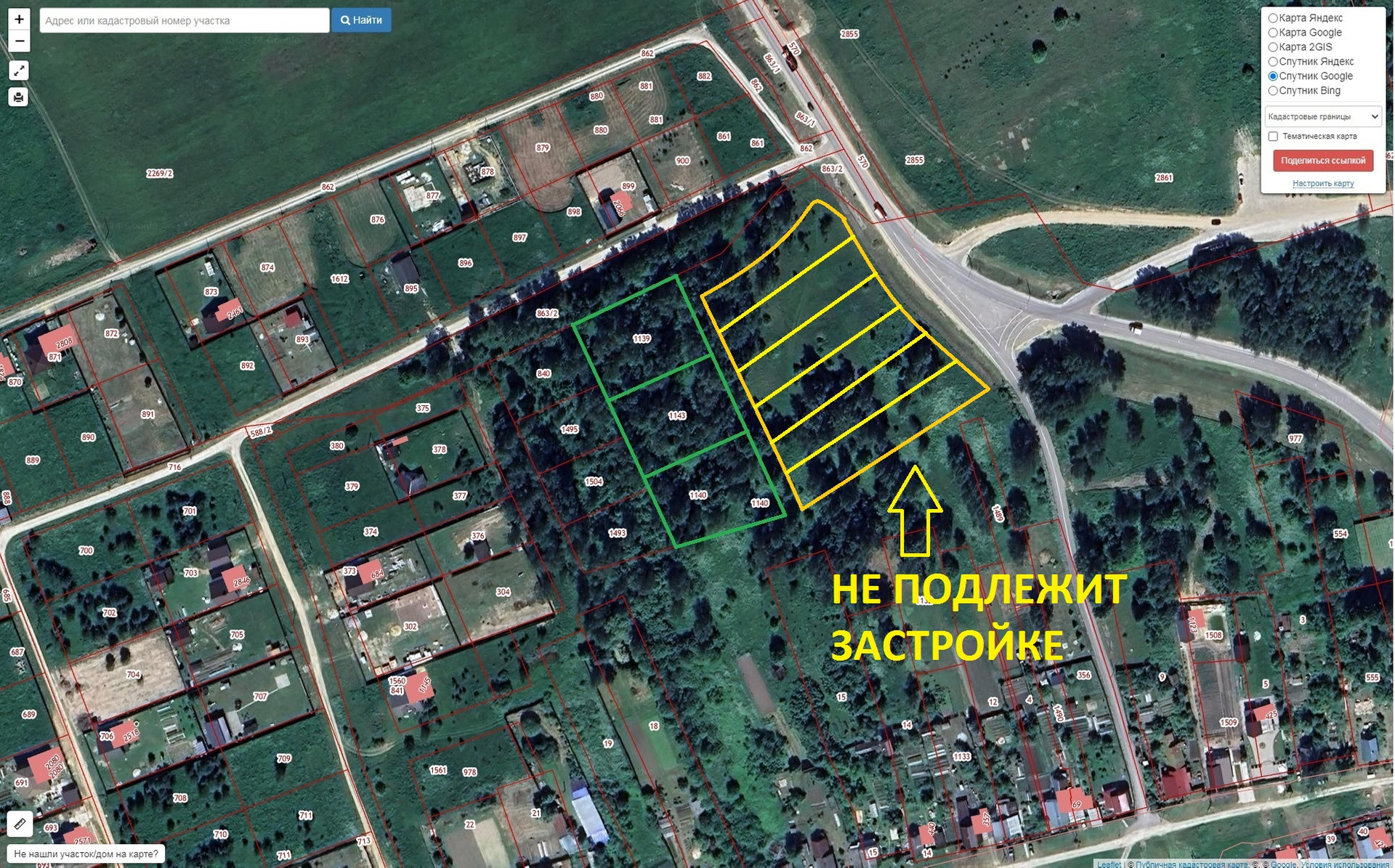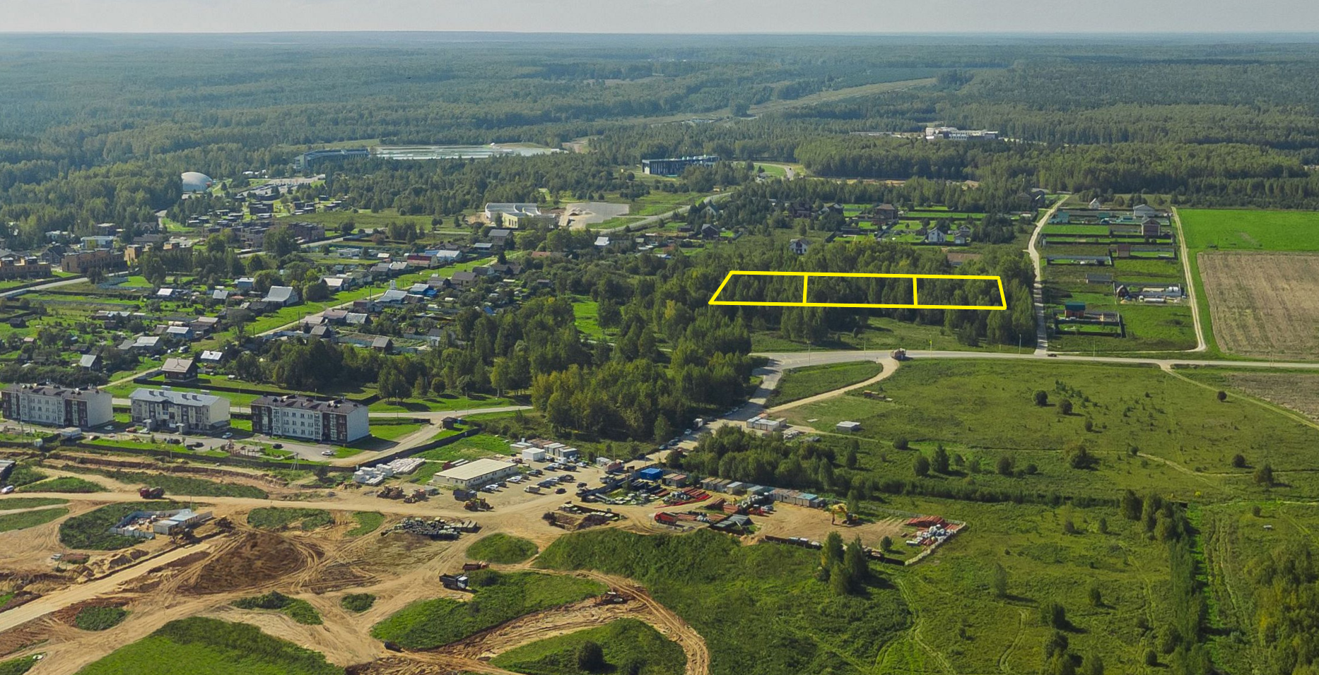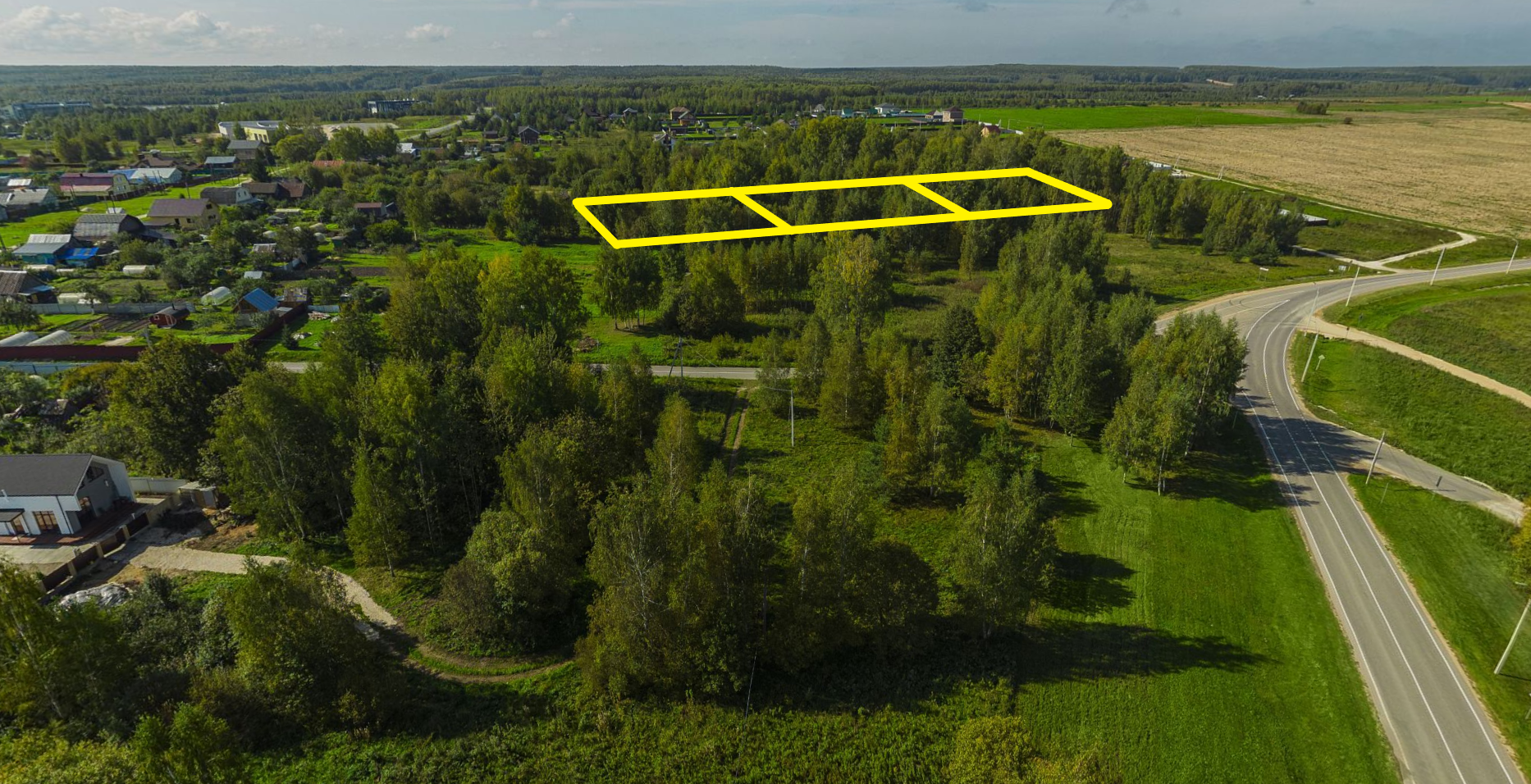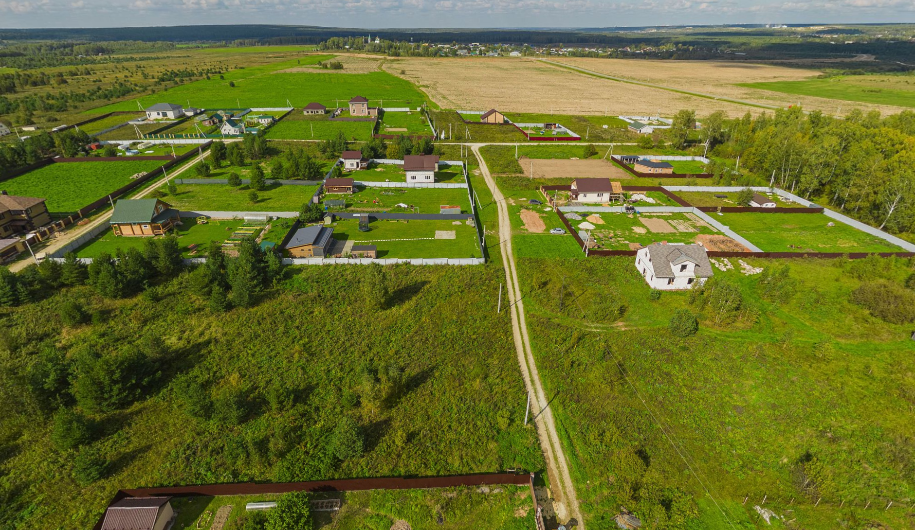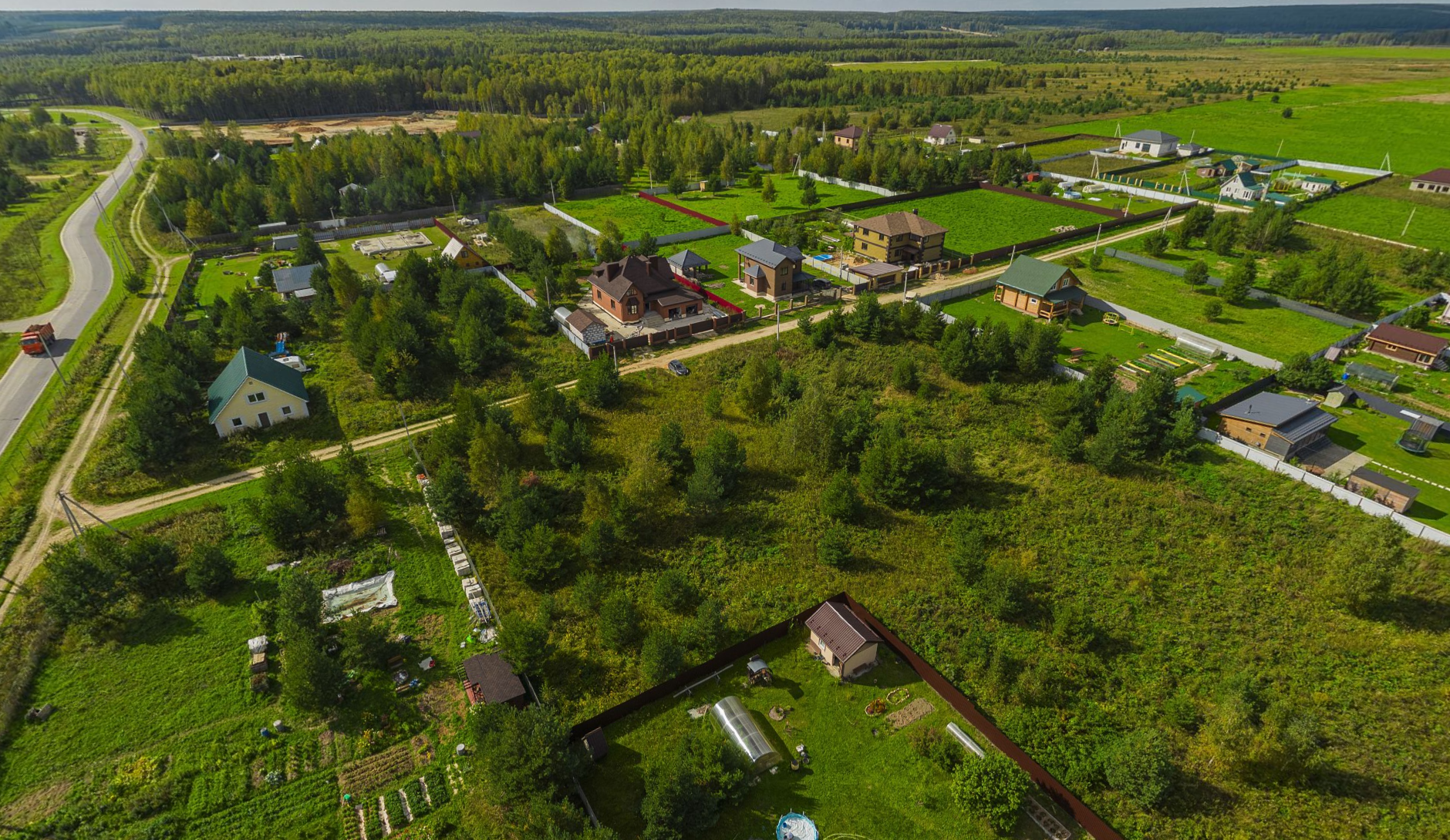 • приятная видовая характеристика - поляна между дорогой и участками не подлежит застройке, останется в будущем пустой - (категория земли - рекреационная зона; заштрихована цветом на одном из фото).