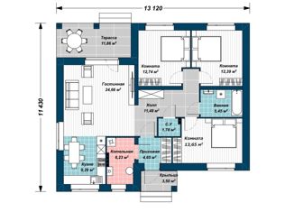 Общая площадь: 120 м2