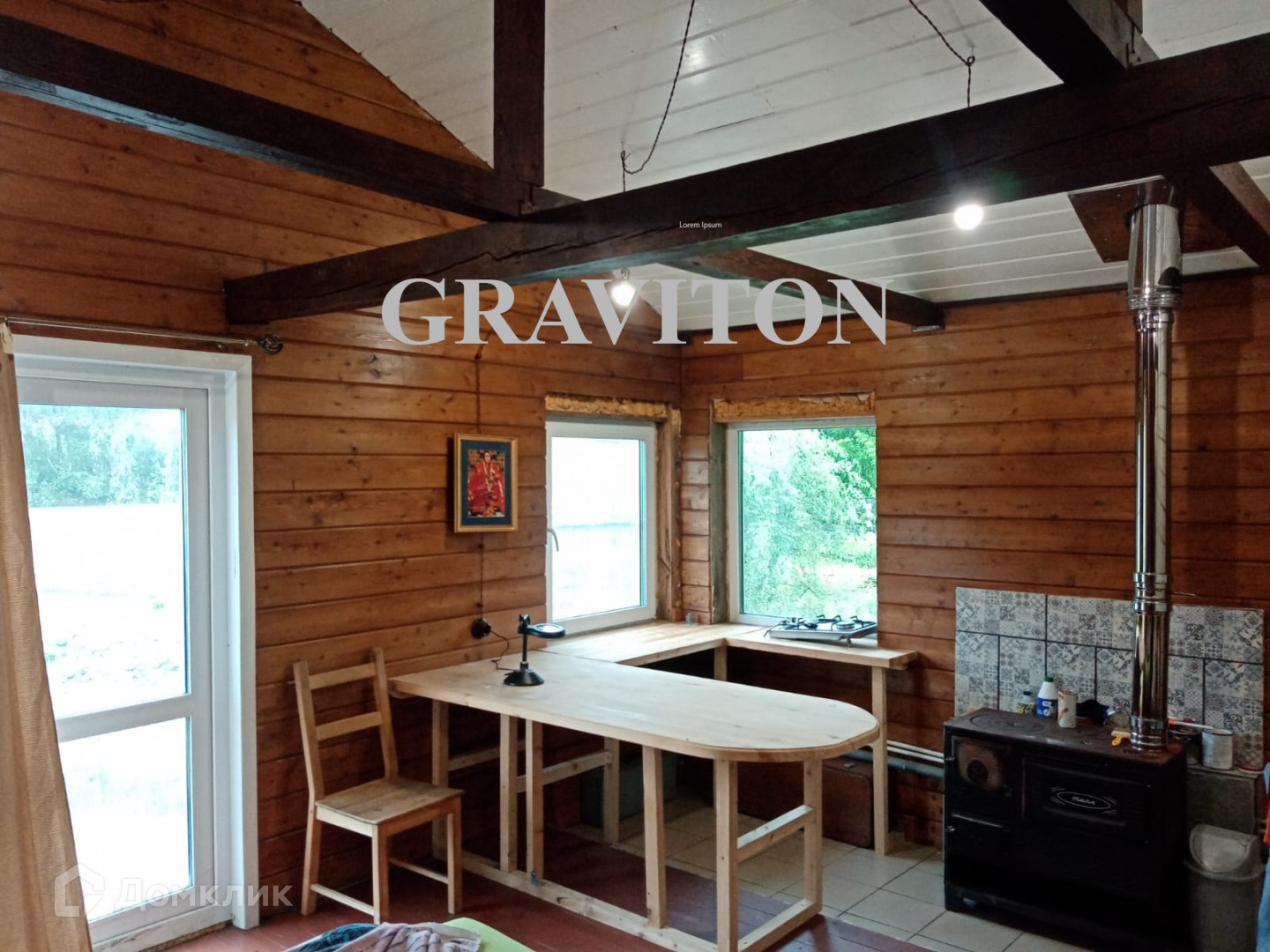 Есть гостевая комната с печкой, которая объединена с баней 50 кв метров, в бане есть санузел. Из комнаты вид на Катунь и выход к ней.
