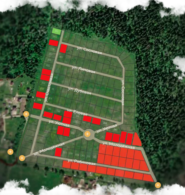 В 5 минутах езды от посёлка — магазины, аптека, школа, детский сад. До остановки общественного транспорта — 10 минут пешком. Участки полностью готовы к продаже: назначение земли — ИЖС, выполнено межевание.