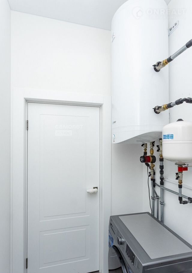 Входная дверь со вторым светом, высота 2,4 м. В доме теплые полы в один уровень, а так же конвекторы отопления.