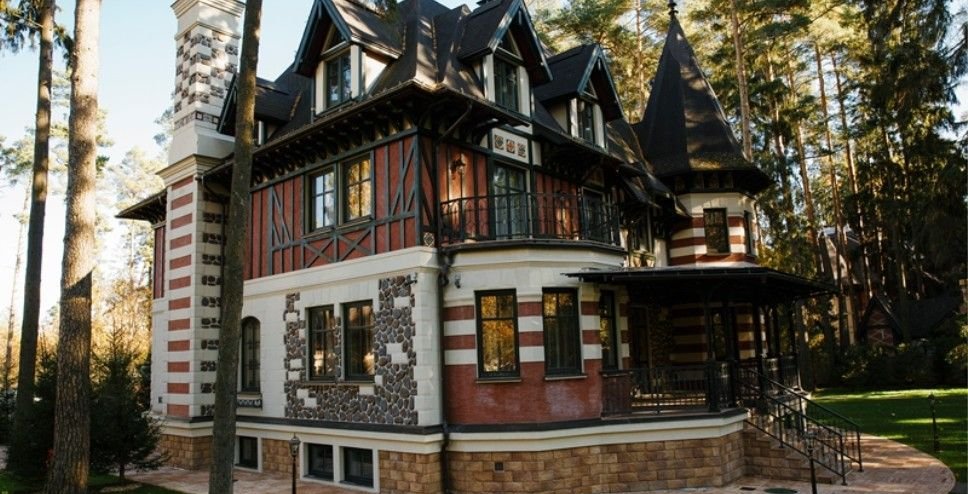 спальня со своей гостиной, гардеробной, двумя с/у (мужской и женский) и большим балконом с видом на сад. гостевые спальни можно использовать как кабинет, будуар и т.п. большой балкон с выходом из холла. камин. На третьем этаже: четыре комнаты, из низ три спальни, каждая со своей ванной комнатой, и одна проходная гостиная с французским балконом. В мансарде: комната свободного назначения, с/у. На участке: на участке расположен дом для персонала с гаражом на 1