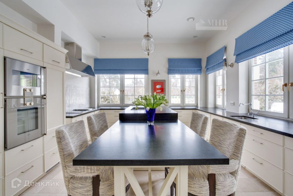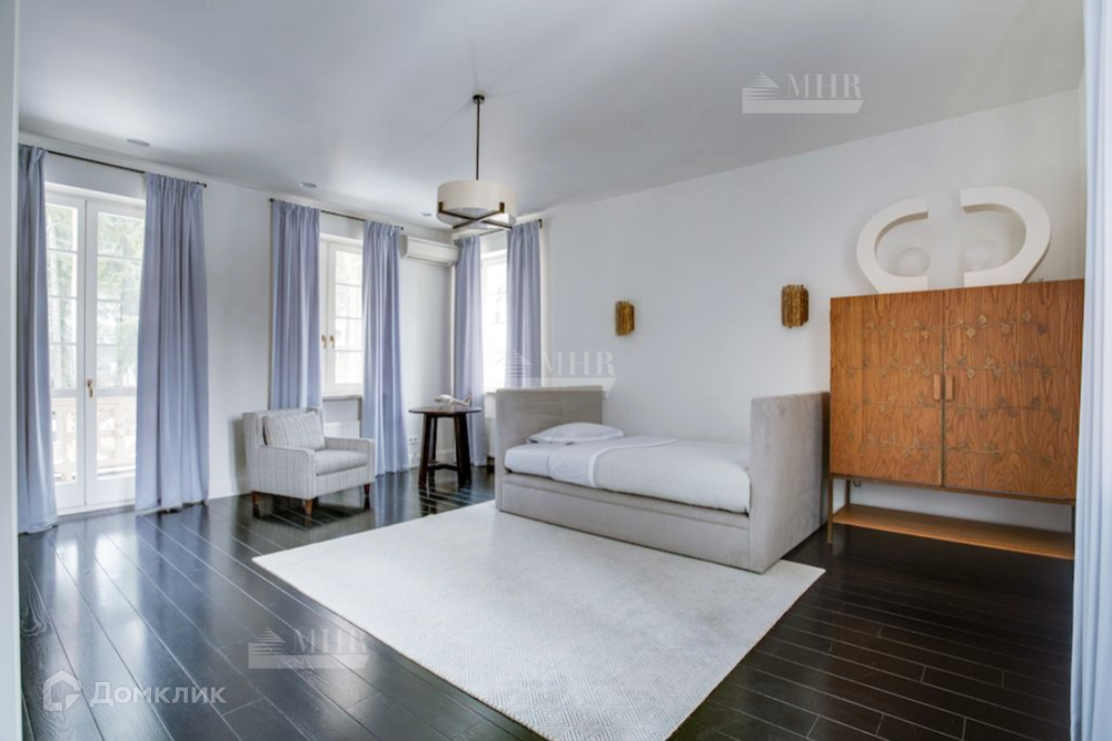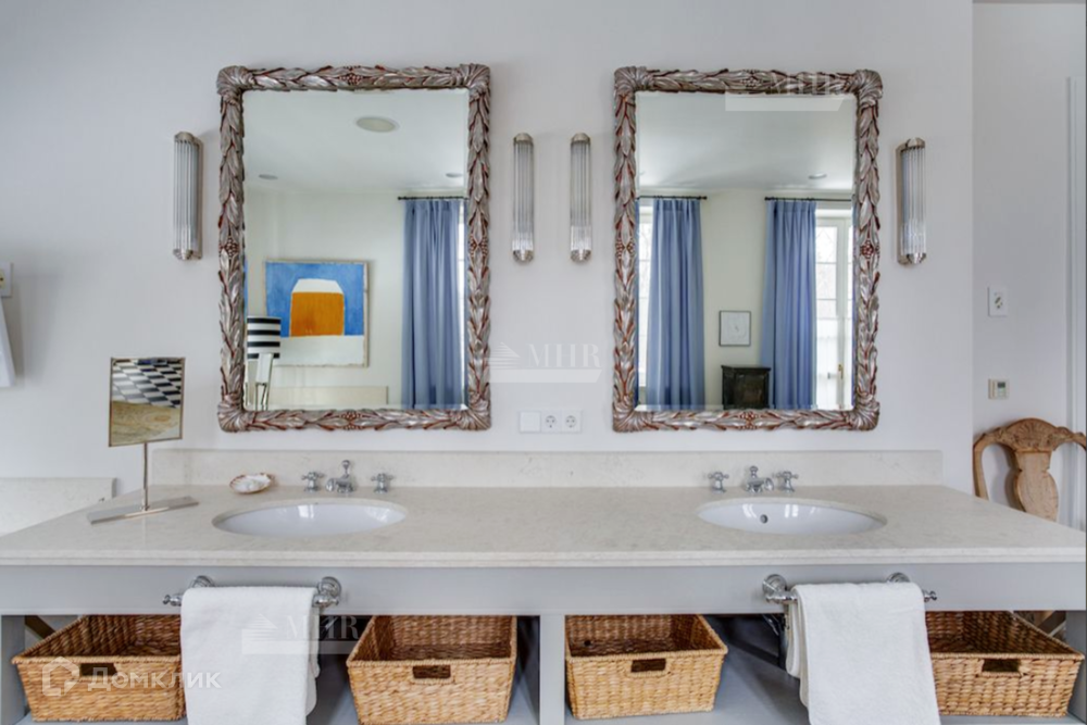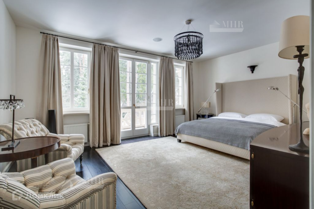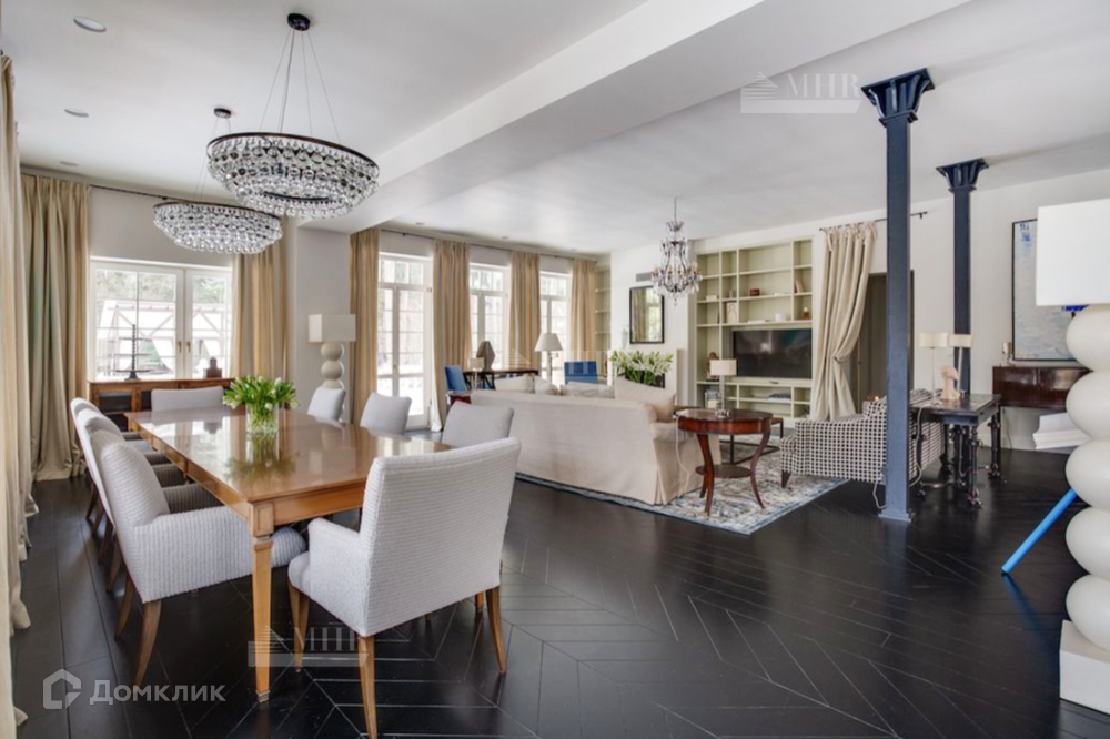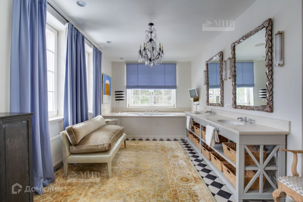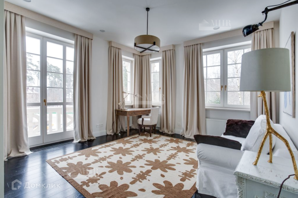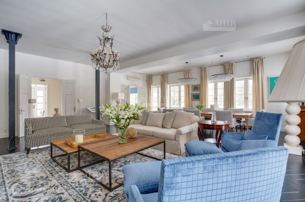 Мебель в доме: Ralph Lauren Home, Grange, Baker, а также выполненная по индивидуальному заказу в Нью-Йорке в стиле John Saladino. В доме продуманы различные сценарии освещения это и подвесные люстры и настенные бра, торшеры и настольные лампы от ведущих брендов: Ralph Lauren Home, Ochre, Summer Hill, Fdc, Labyrinthe, Moooi, Vaughan, Porta Romana.