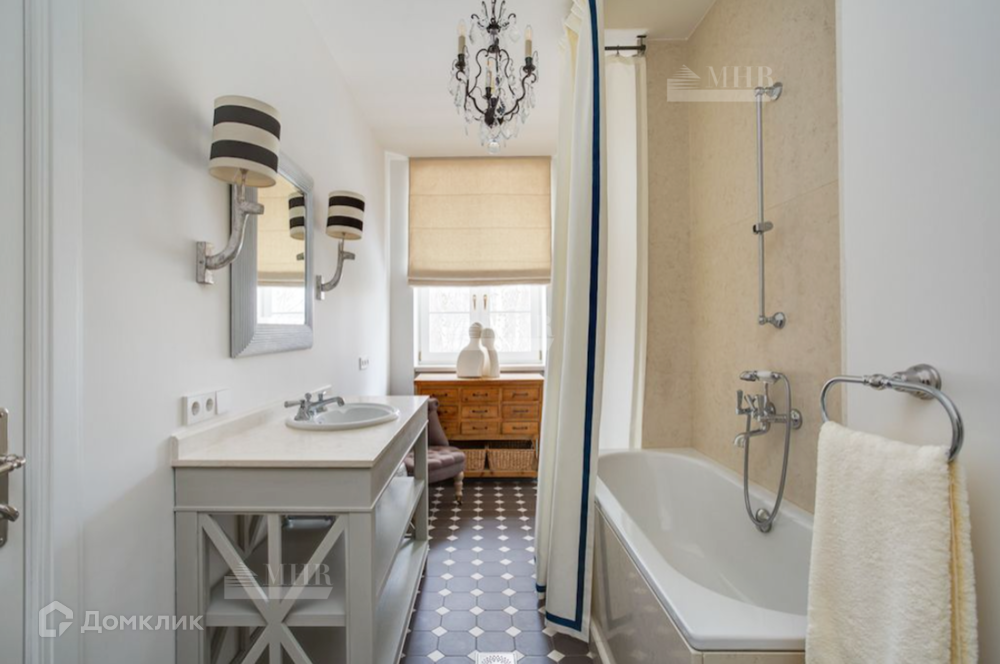 Тщательно подобраны мебель и текстиль, освещение и предметы декора от ведущих мировых брендов, а также уникальные винтажные и антикварные предметы интерьера. В гостиной журнальные столики со столешницами из антикварных досок гармонично сочетаются с диванами и столиками Ralph Lauren. Каминный портал выполнен на заказ на фабрике Artishock из известняка и мрамора, а экран для камина винтаж (Испания).