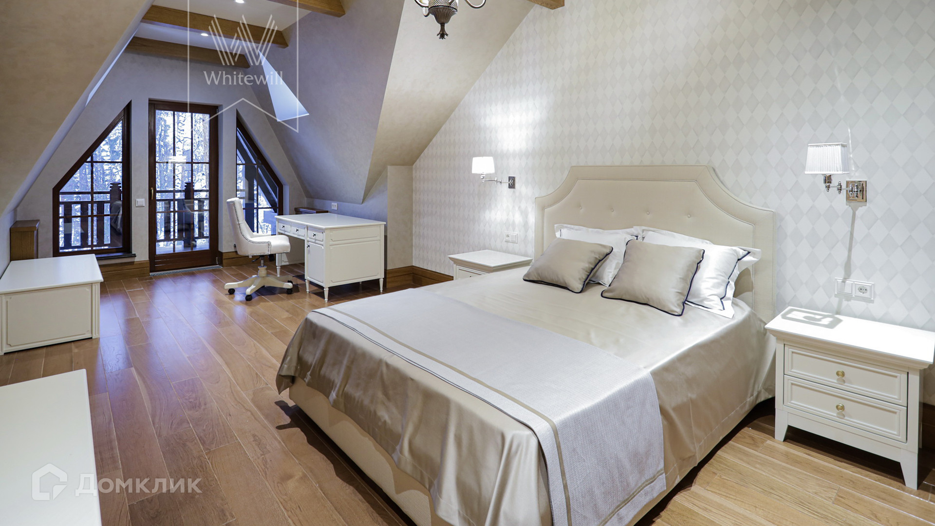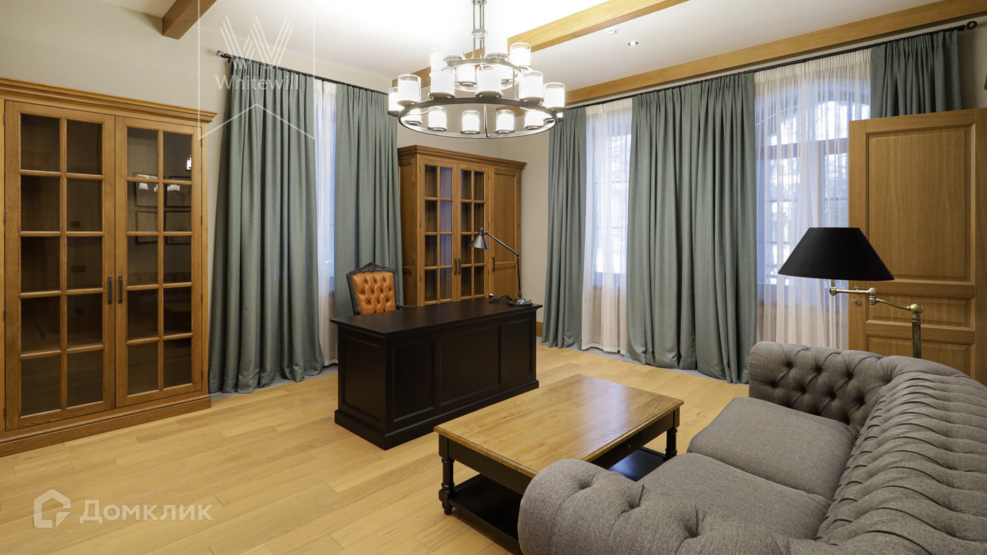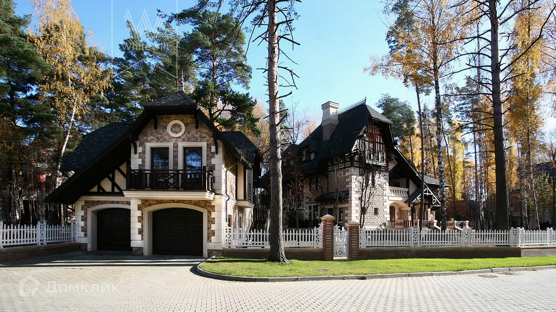 ID 5 488. Довиль. Трехэтажный дом во французском стиле «СанЖерма» с пятью спальнями, каминной, библиотекой и большой террасой. Дом готов к ремонту. Общая площадь помещений — 658 м². На придомовом участке 30 соток строит гараж на 2 машины с квартирой для персонала на втором этаже. Площадь гаража — 109 м².