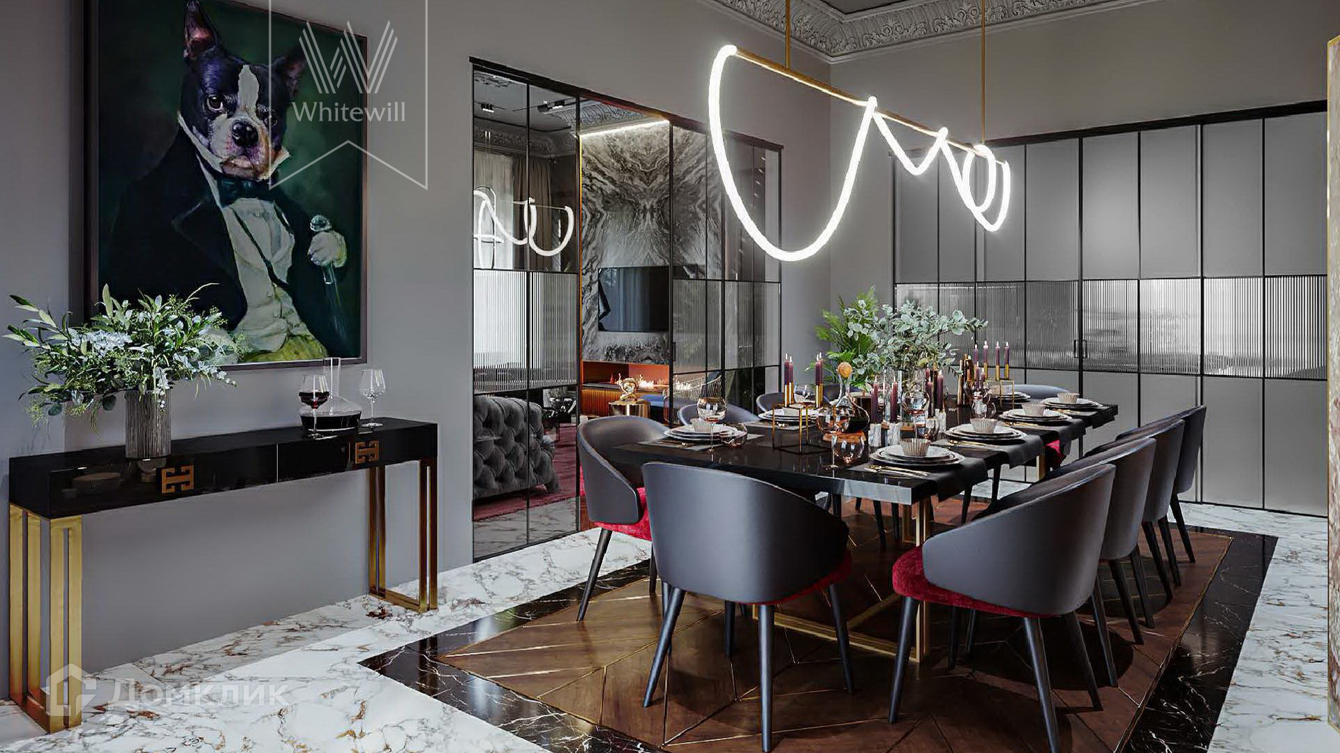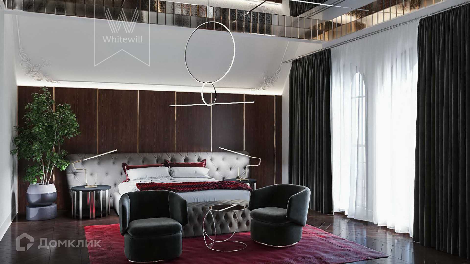 2-й уровень: 2 спальни с санузлами и гардеробными, спальня с балконом и санузлом, гардеробная, библиотека.