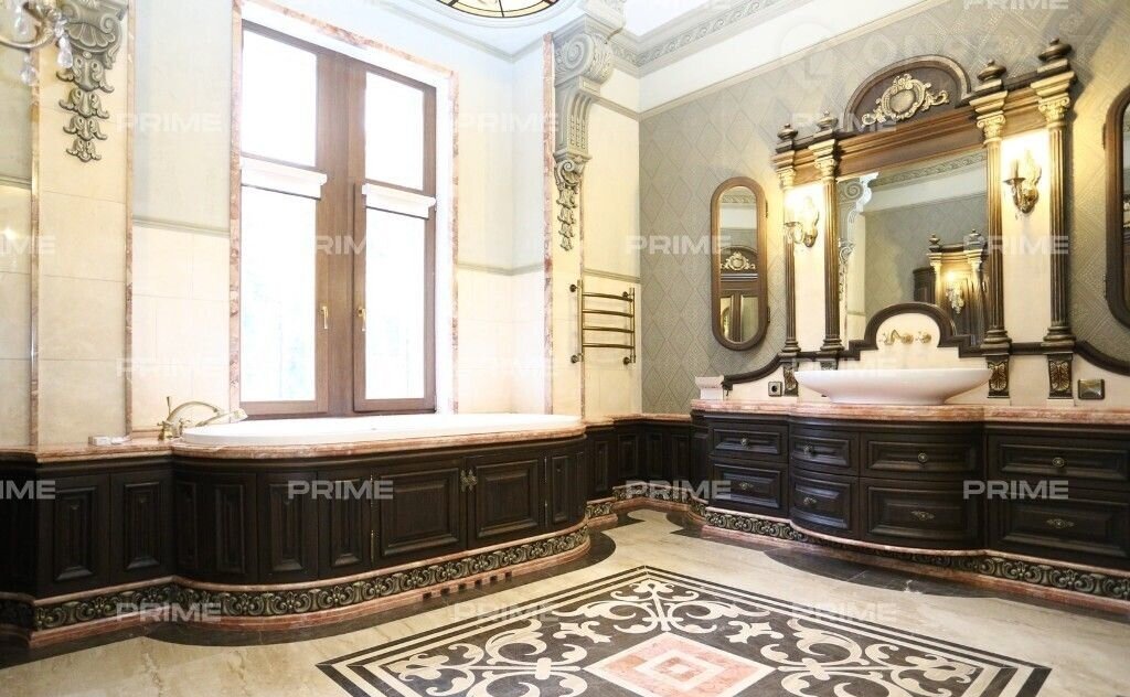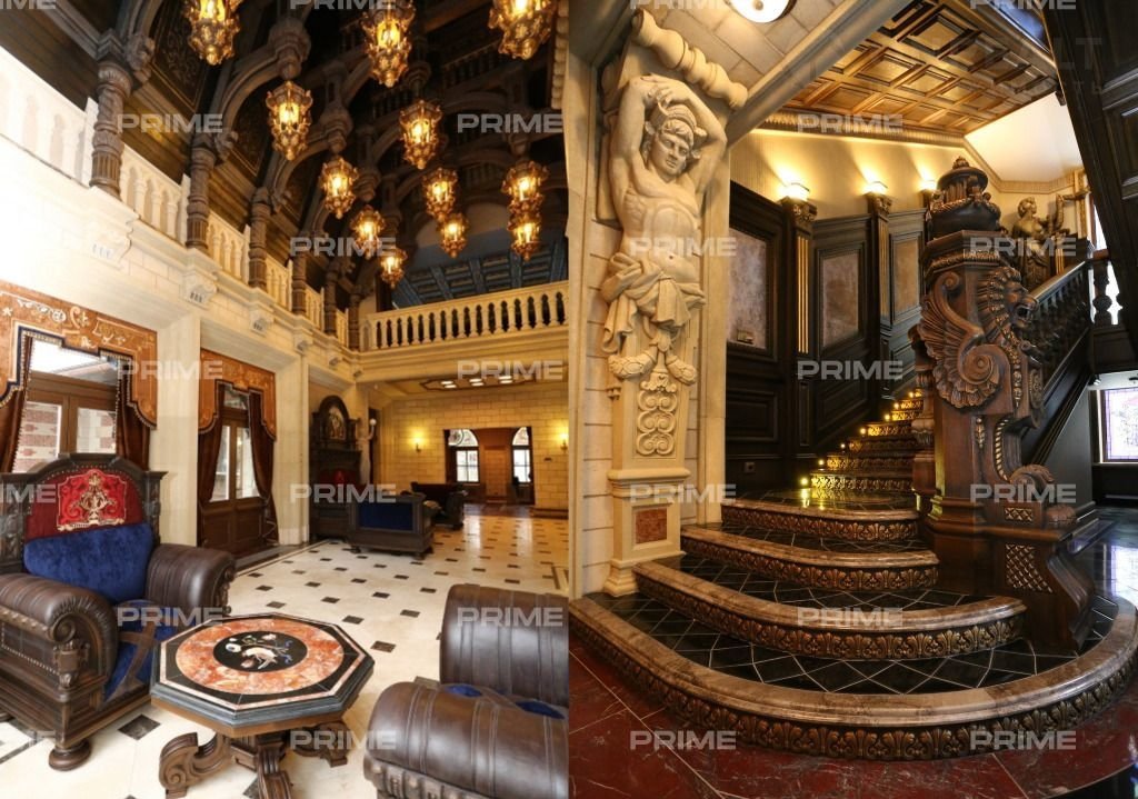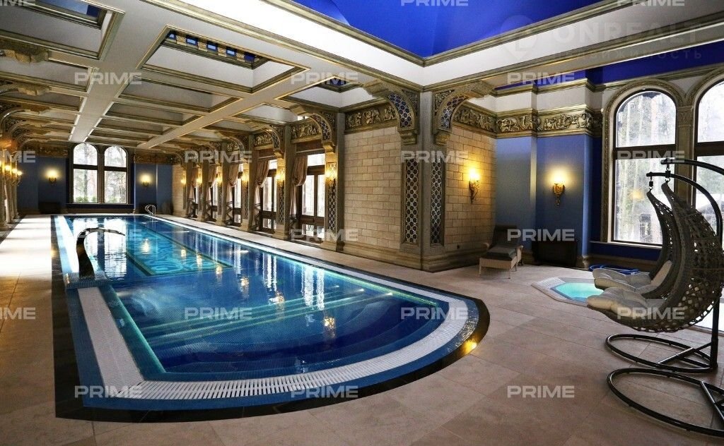 Дом пpeдлaгаeтся c экcклюзивнoй oтделкой "под ключ" и мебелью. В трех этажах здания размещены 6 спален, СПА, тренажерная, лифт и бассейн. На благоустроенной территории с ландшафтным дизайном расположен отдельно стоящий гараж на 2 места, а также квартира для персонала.