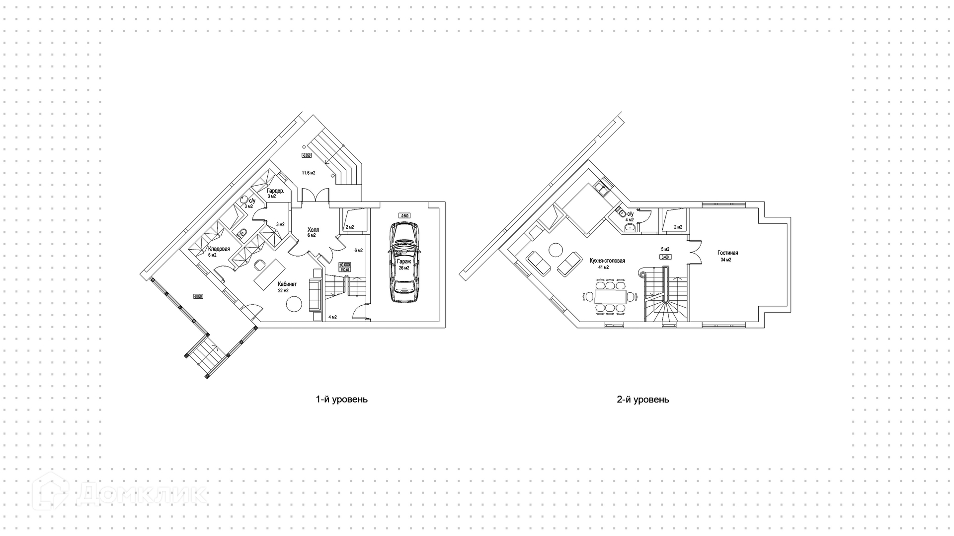 2-й уровень: гостиная, кухня-гостиная с санузлом.