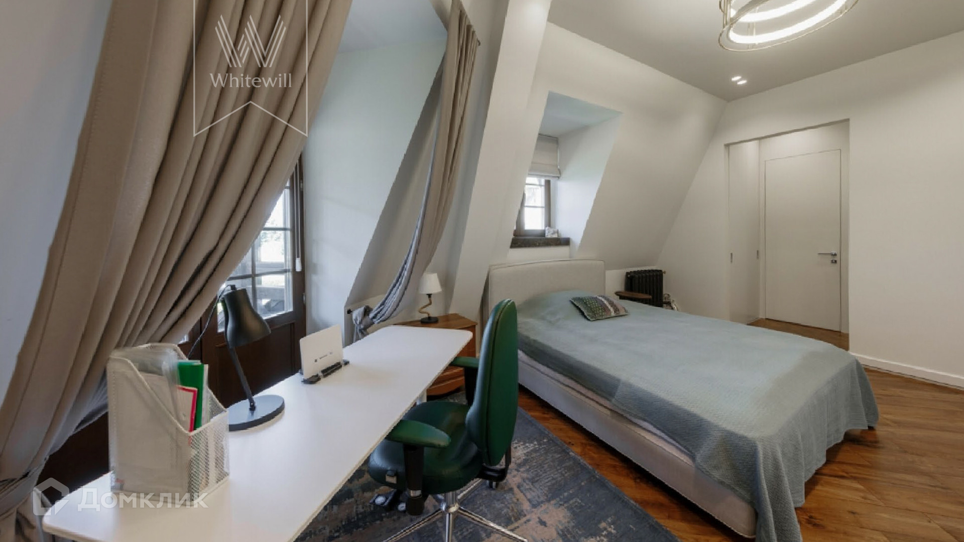 ID 11 843. Довиль. Таунхаус во фламандском стиле площадью 387 м² расположен в торцевой части секции. Трехэтажный фасад здания облицован бежевой штукатуркой и клинкерной плиткой. В отделке лаконичного интерьера преобладают молочно-бежевые оттенки. В доме разместили 3 спальни, гостиную, кухню, столовую, кабинет и гараж на 1 машину с лифтом для продуктов. Рядом с резиденцией построена всесезонная беседка с кухней.