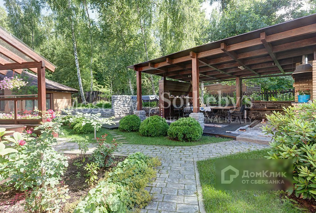 На участке ландшафтный дизайн, баня 112 кв.м с комнатой отдыха и купелью, беседка, зона барбекю.