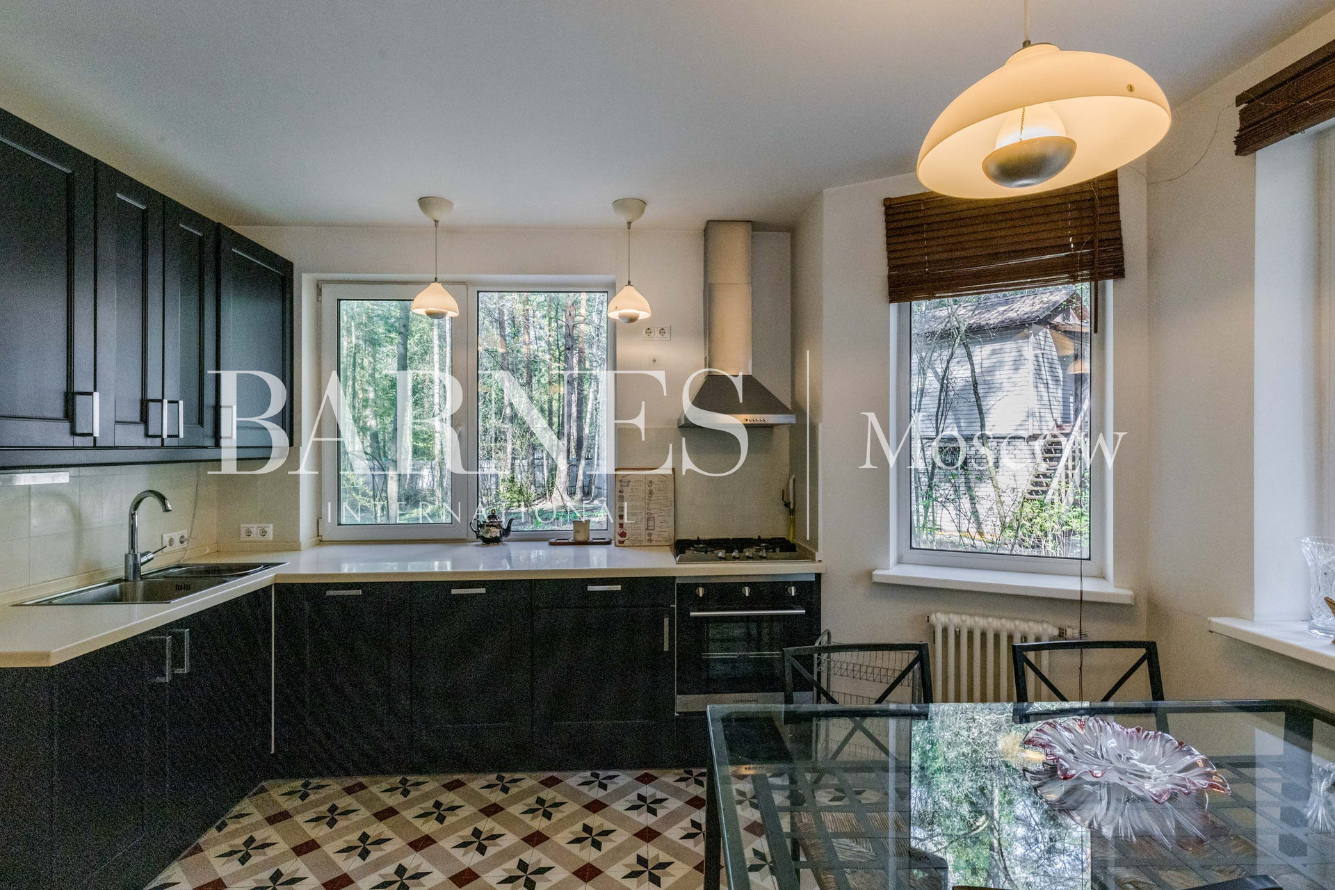 1 этаж: прихожая, кухня, столовая, гостиная, с/у, кабинет, спальня с с/у и гардеробной, комната для спорта, постирочная, подсобное помещение;