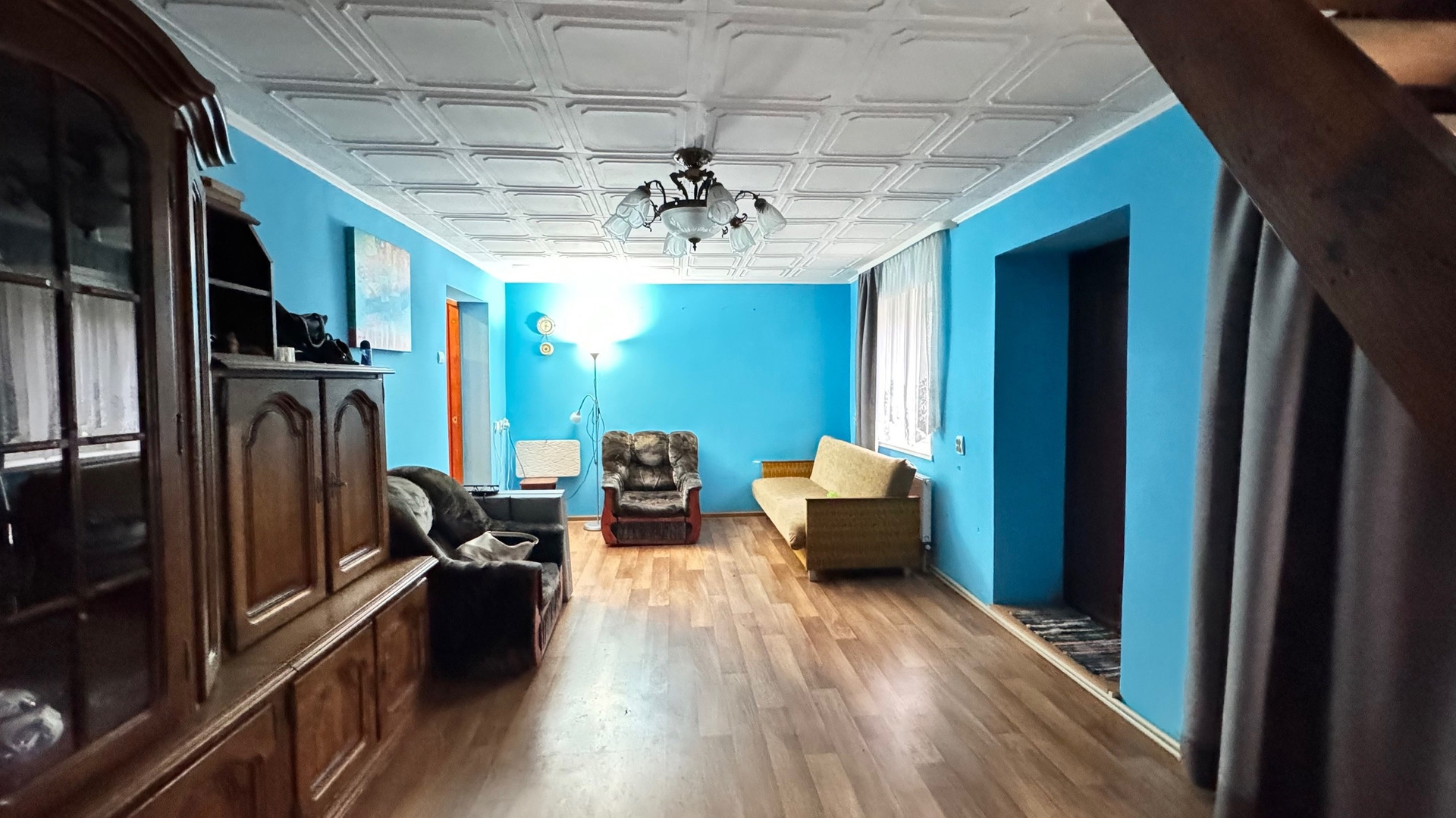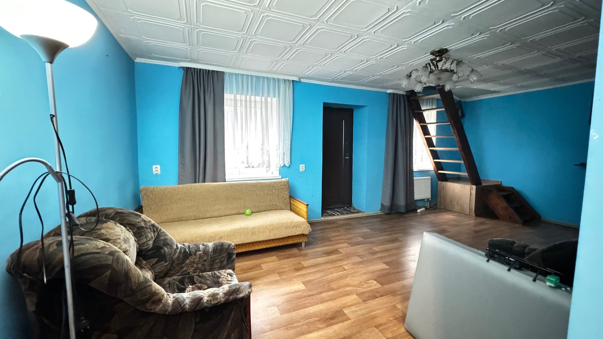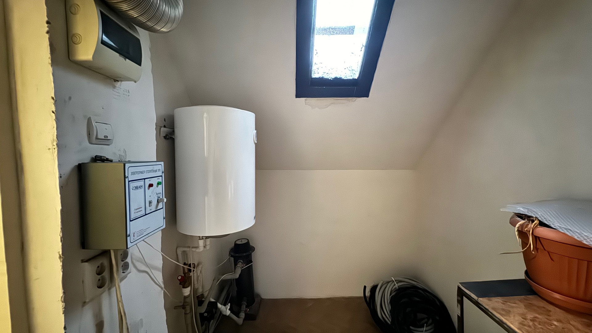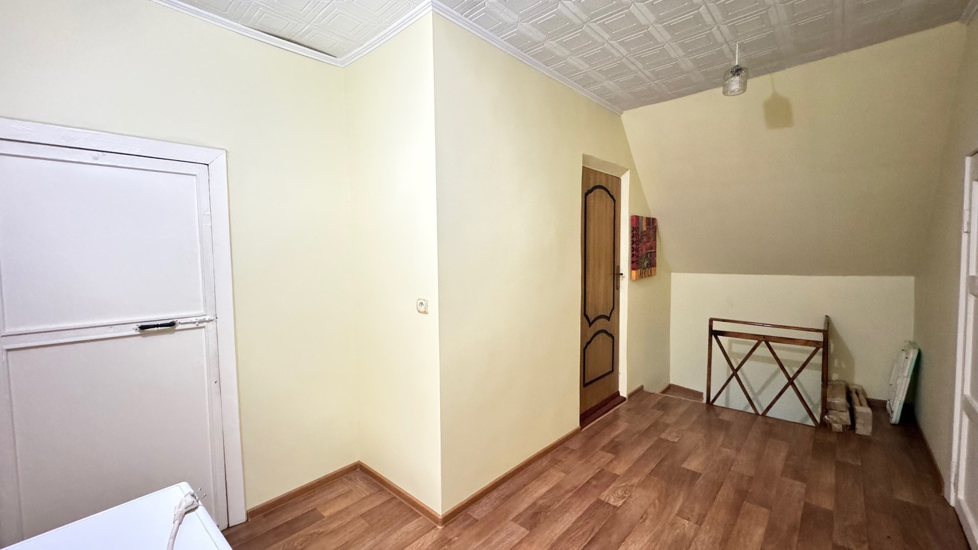 На первом этаже расположены одна комната и кухня,второй этаж -три изолированных комнаты,ванная и туалет. Хороший ремонт, остается вся мебель и бытовая техника.Сделан косметический ремонт. Отопление трех видов: печка, электрокотел,газовый котел. Подключено электричество 380Вт.