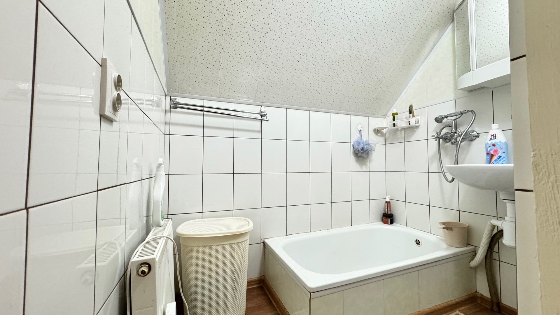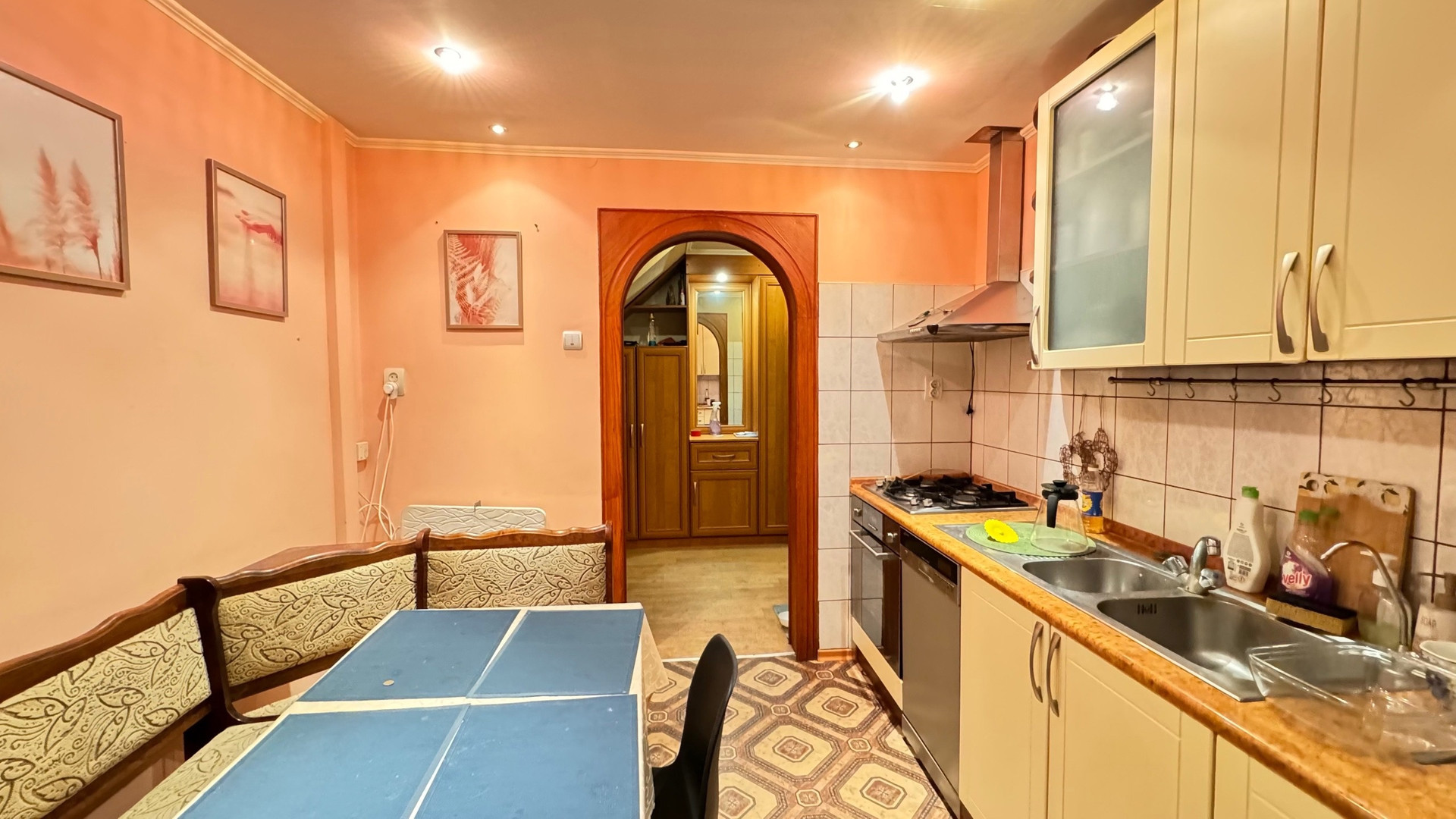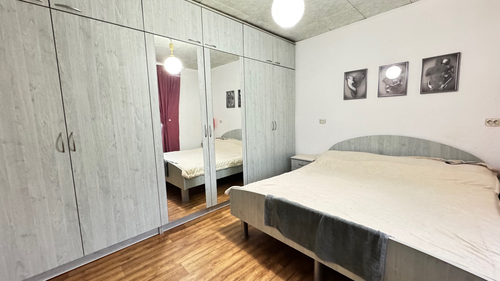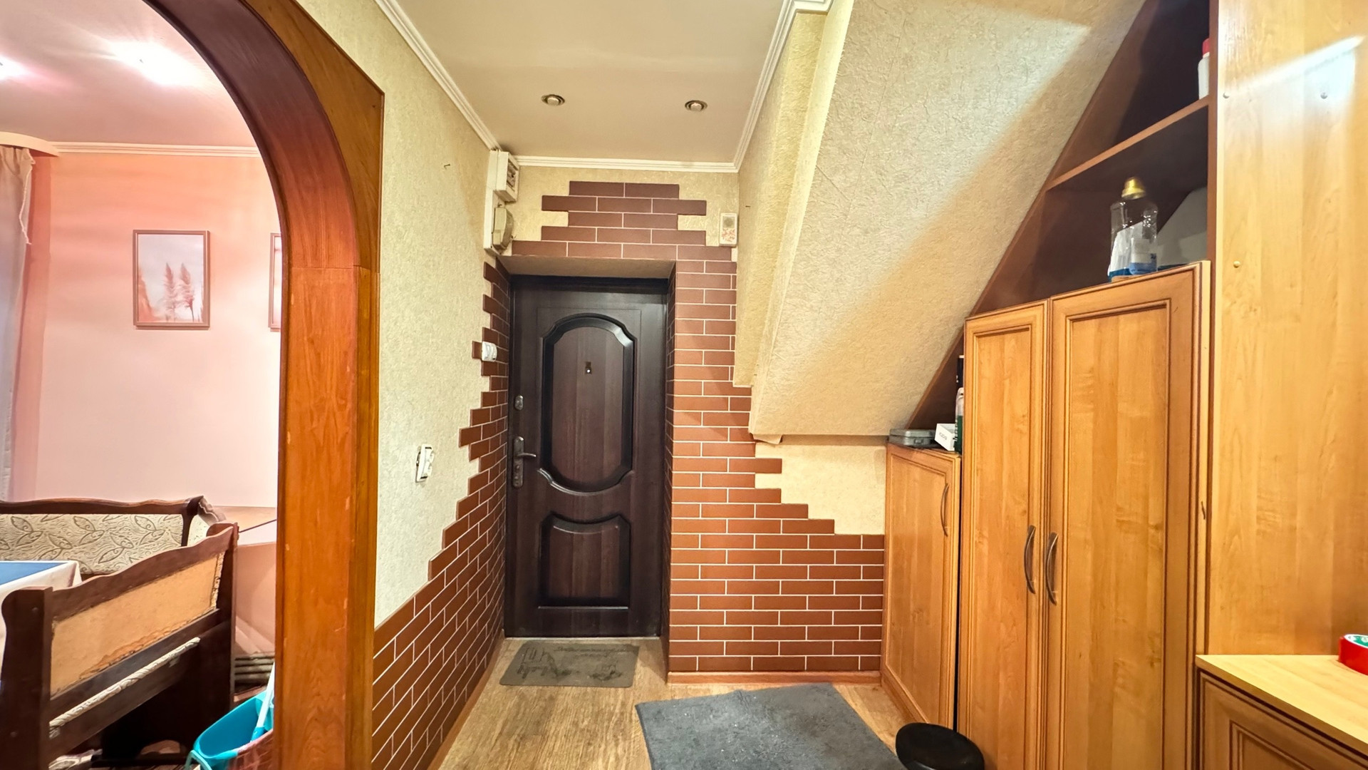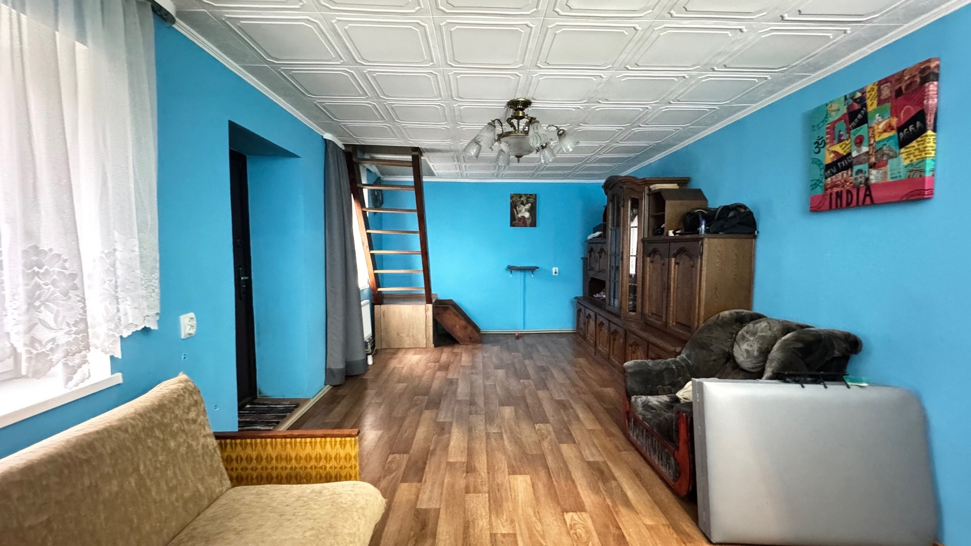 На первом этаже расположены одна комната и кухня,второй этаж -три изолированных комнаты,ванная и туалет. Хороший ремонт, остается вся мебель и бытовая техника.Сделан косметический ремонт. Отопление трех видов: печка, электрокотел,газовый котел. Подключено электричество 380Вт.