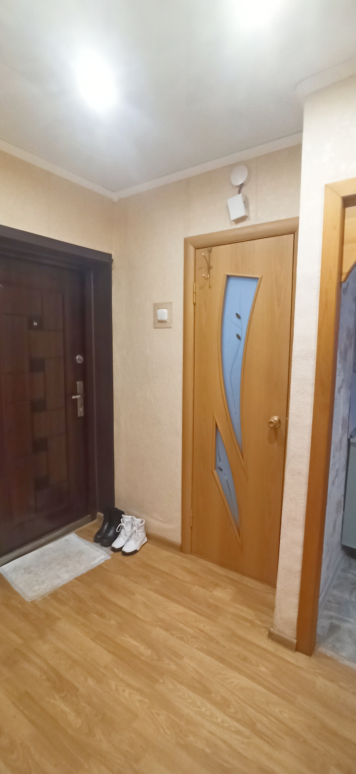 * Очень удачная планировка, квадратная кухня, хорошая кладовка в коридоре, большой совмещенный санузел, большая лоджия, остеклкние пастик (окна и лоджия), пол - ламинат, хорошие двери, квартира угловая, но очень теплая, требует косметического ремонта; соседи тихие, спокойные;