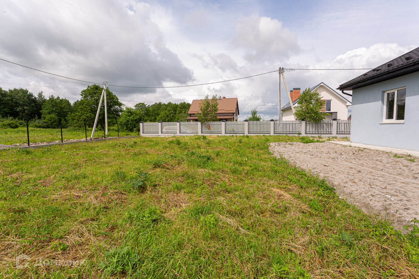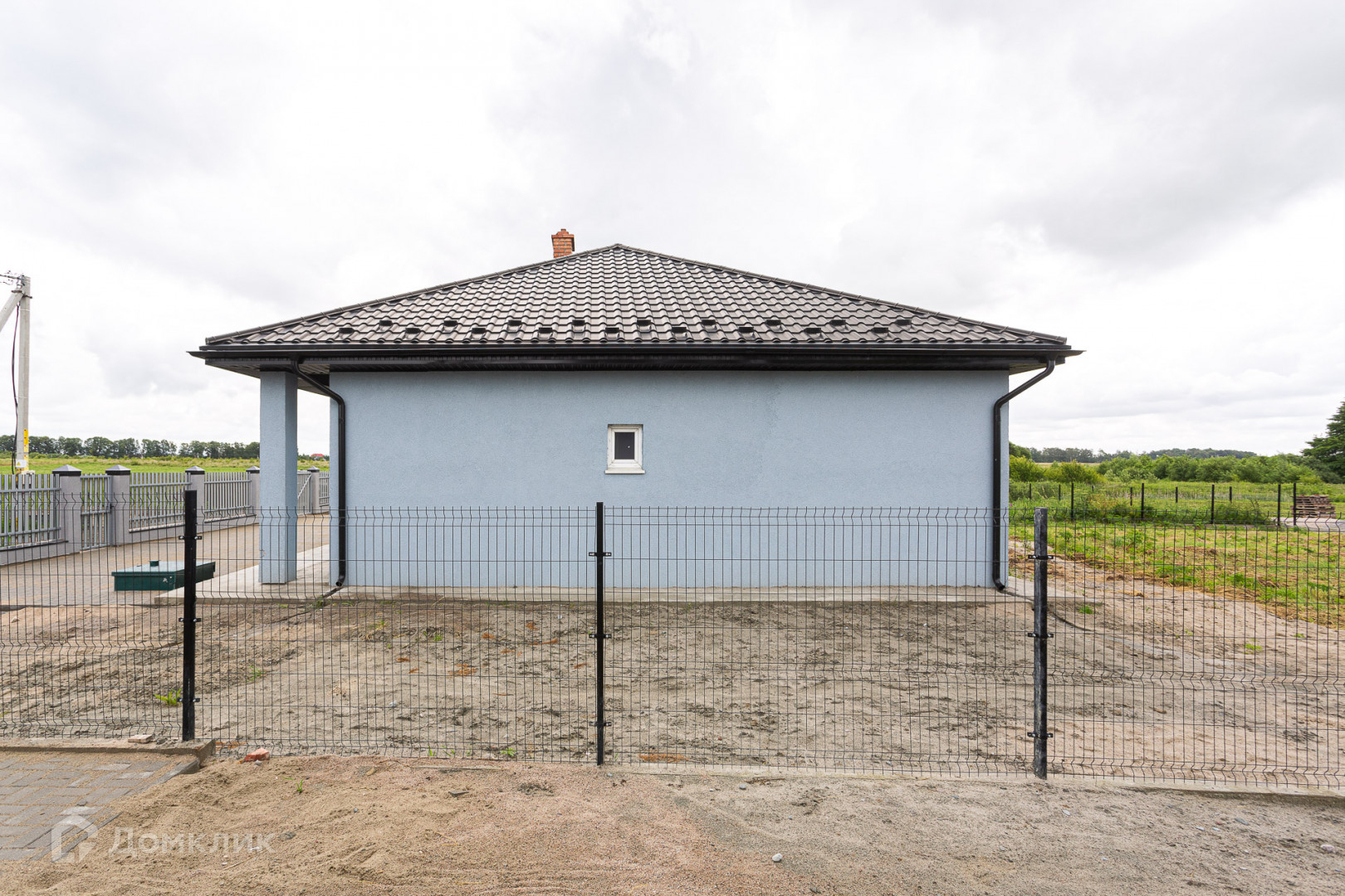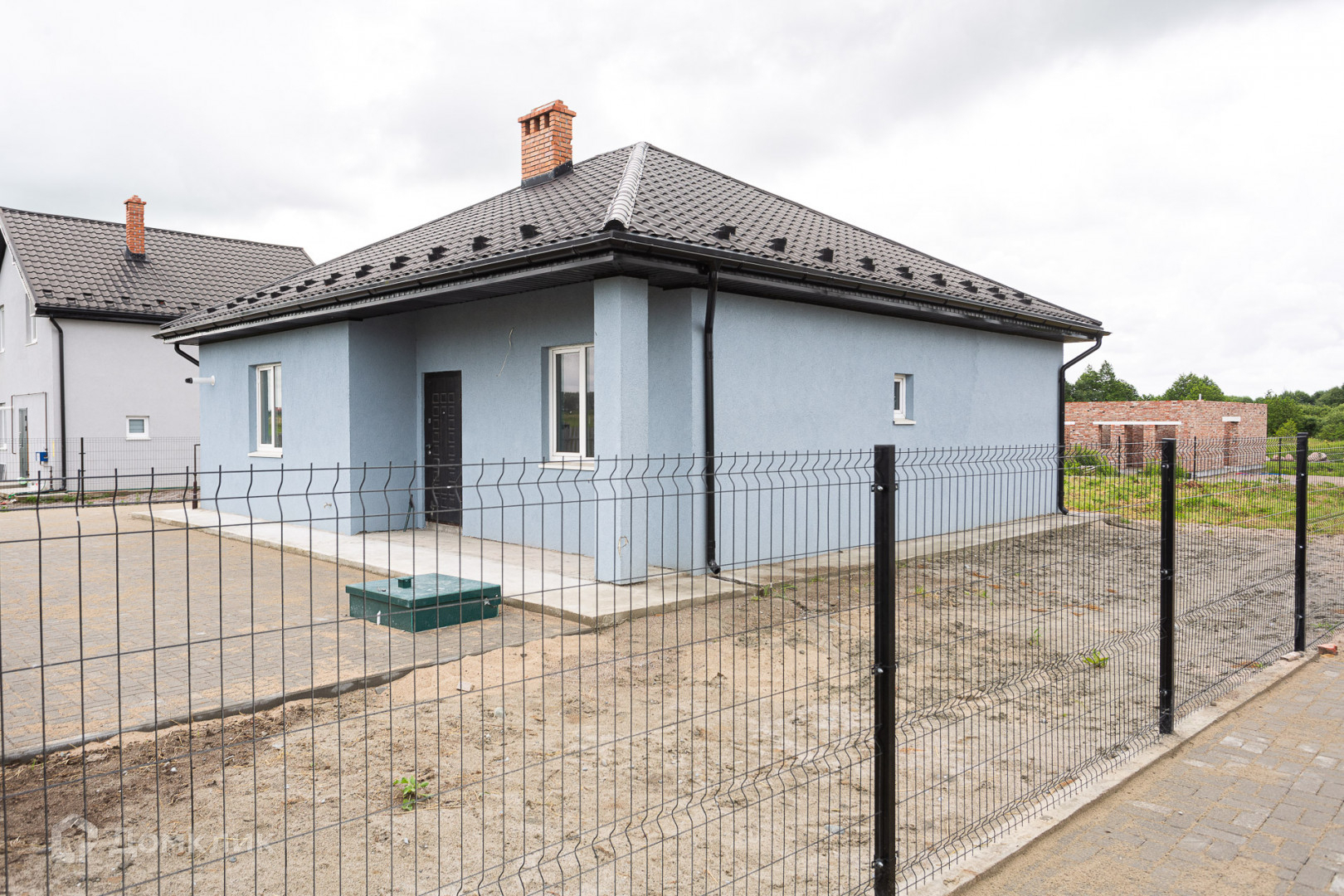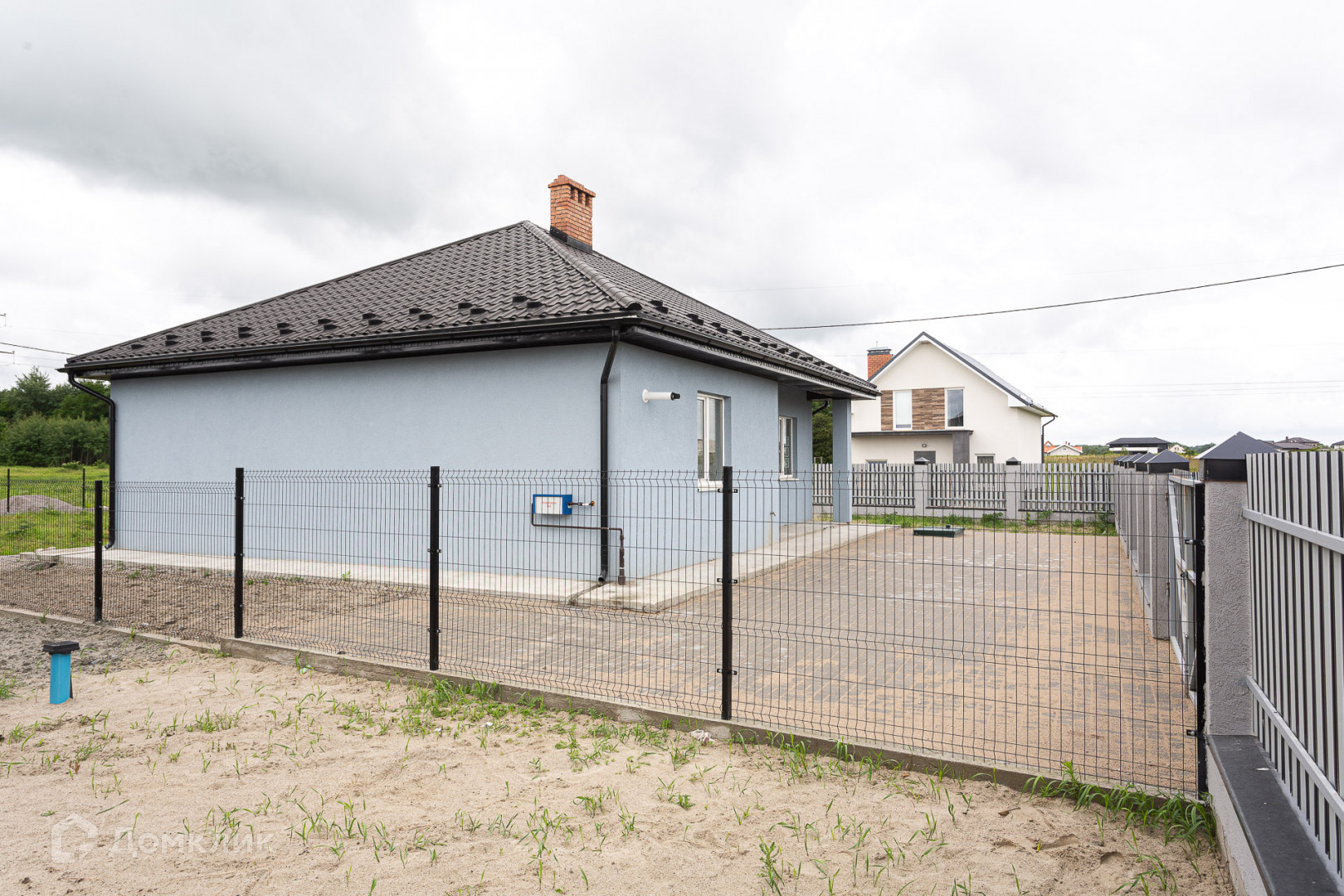 Дом расположен на земельном участке общей площадью 8 соток (ИЖС, собственность). По периметру земельного участка установлен секционный забор с воротами под парковочное место, придомовая территория вымощена тротуарной плиткой.