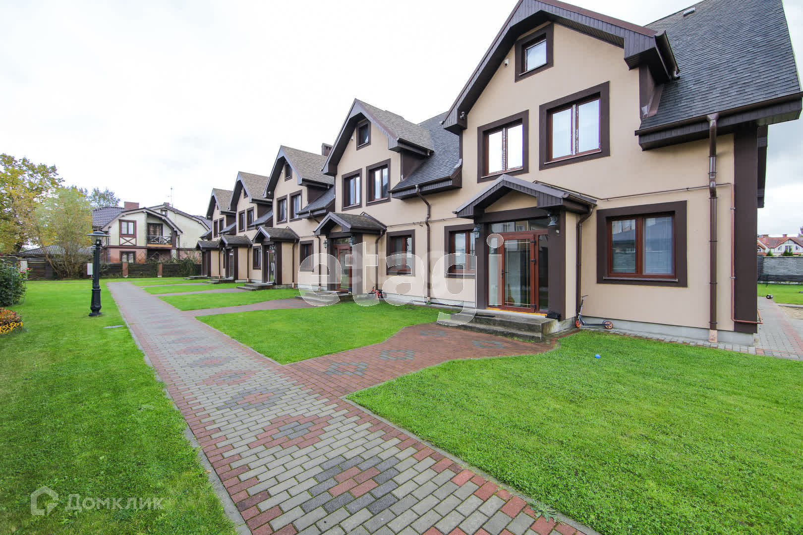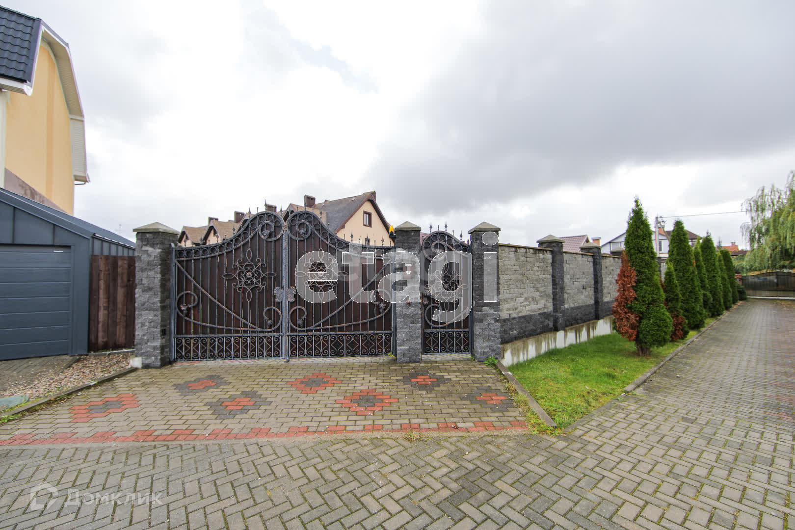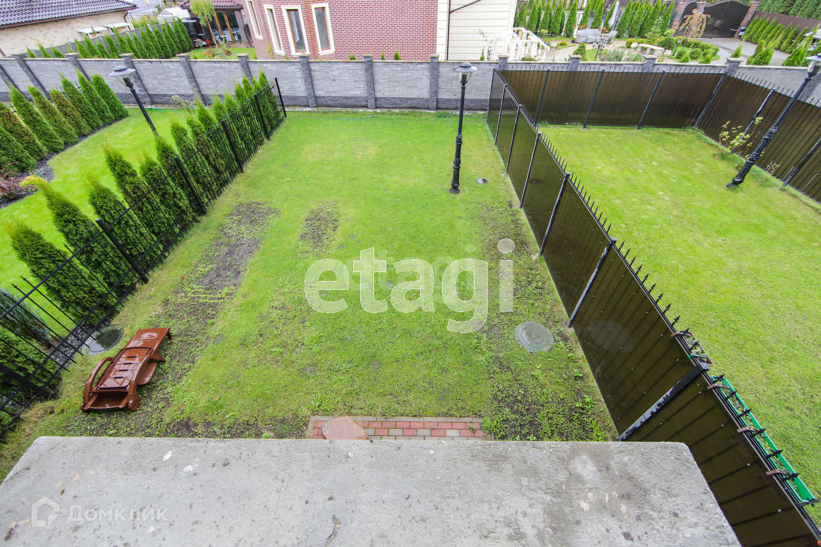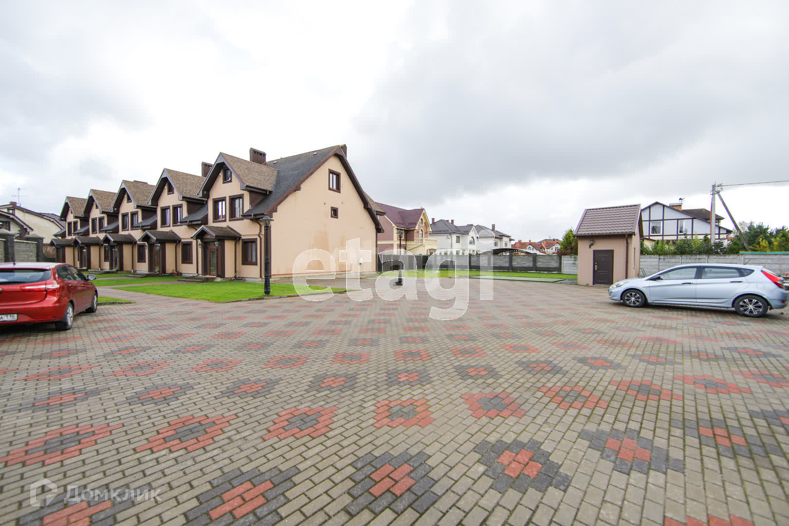Территория огорожена полностью. Имеется видеонаблюдение. Свободная большая парковка. Освещение автоматическое по всему периметру. Распашные ворота открываются от пульта (2 шт в наличие). Вокруг законченная малоэтажная застройка. Дорога к дому, парковка, дорожки к секциям выложены тротуарной плиткой. Всего дом делится на 5 секций и только в нашей секции имеется огороженный задний двор с калиткой на парковку. Посадки на участке минимальны, и вы можете воплотить свои фантазии в реальность.