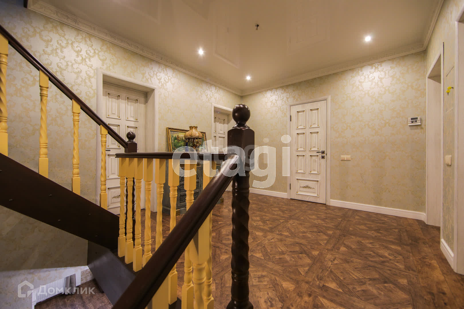 Декор: все двери из натурального дерева выполнены под заказ, точечное освещение и люстры, шторы.