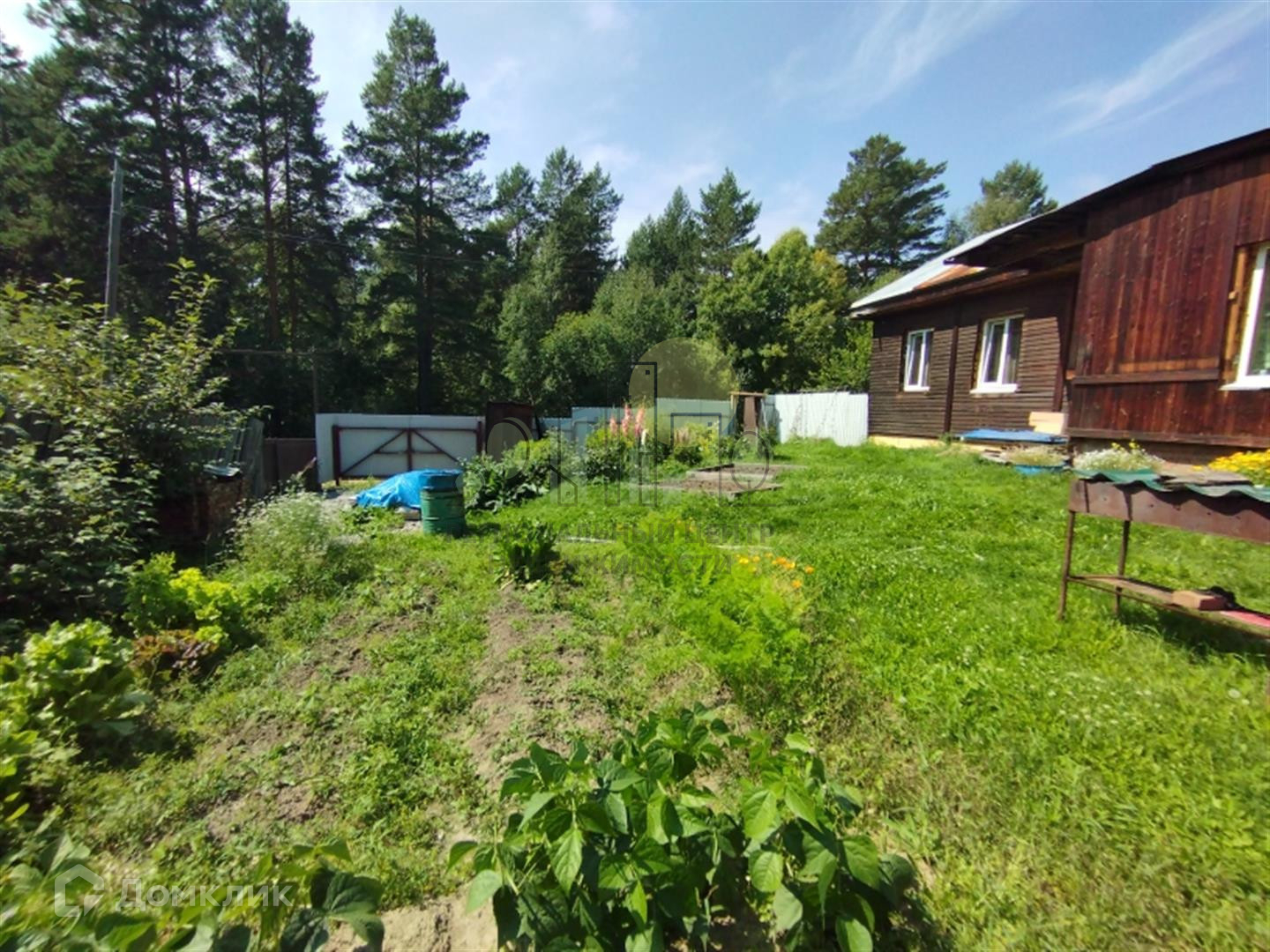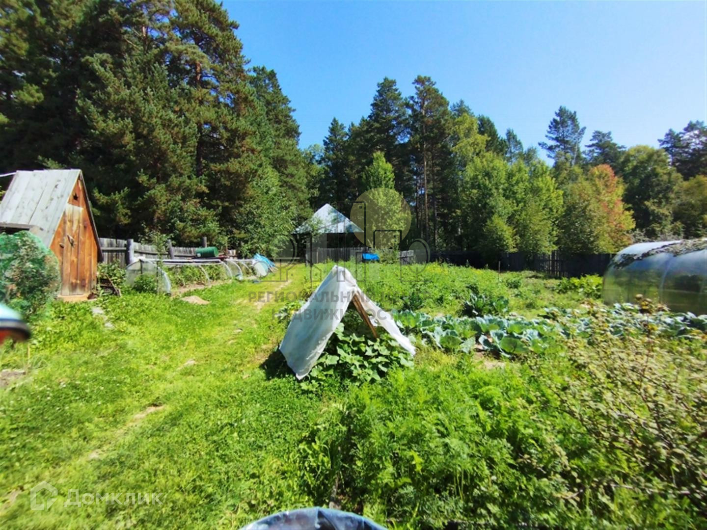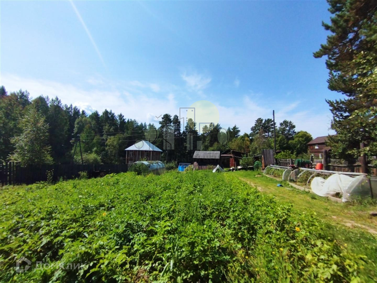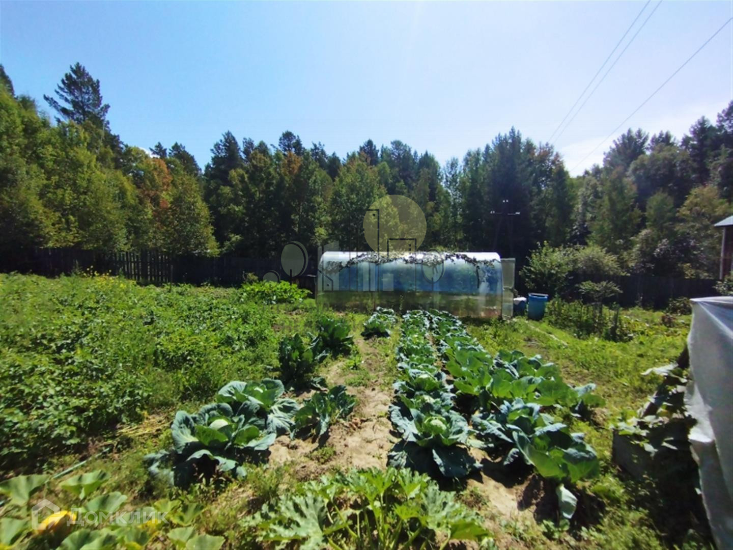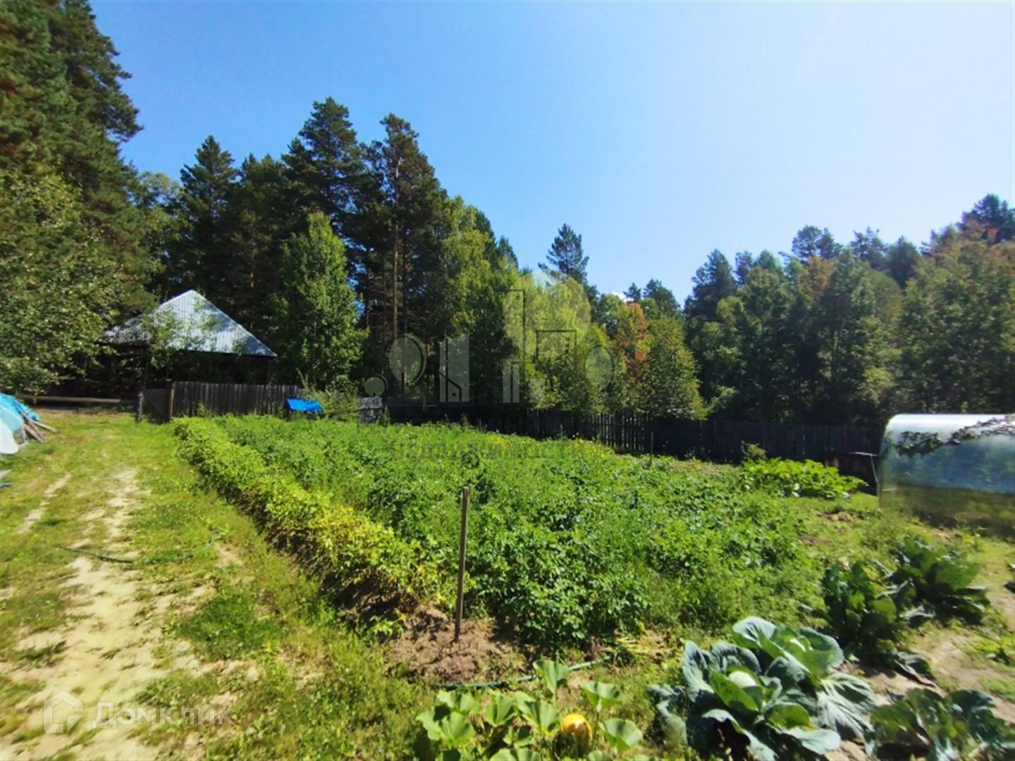 На участке отличная баня из бруса, летний туалет, теплица из поликарбоната, парник. Забор деревянный, фасад из металлического евроштакетника.