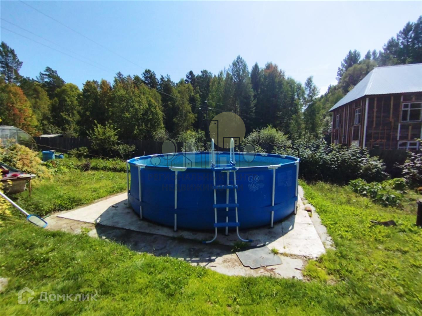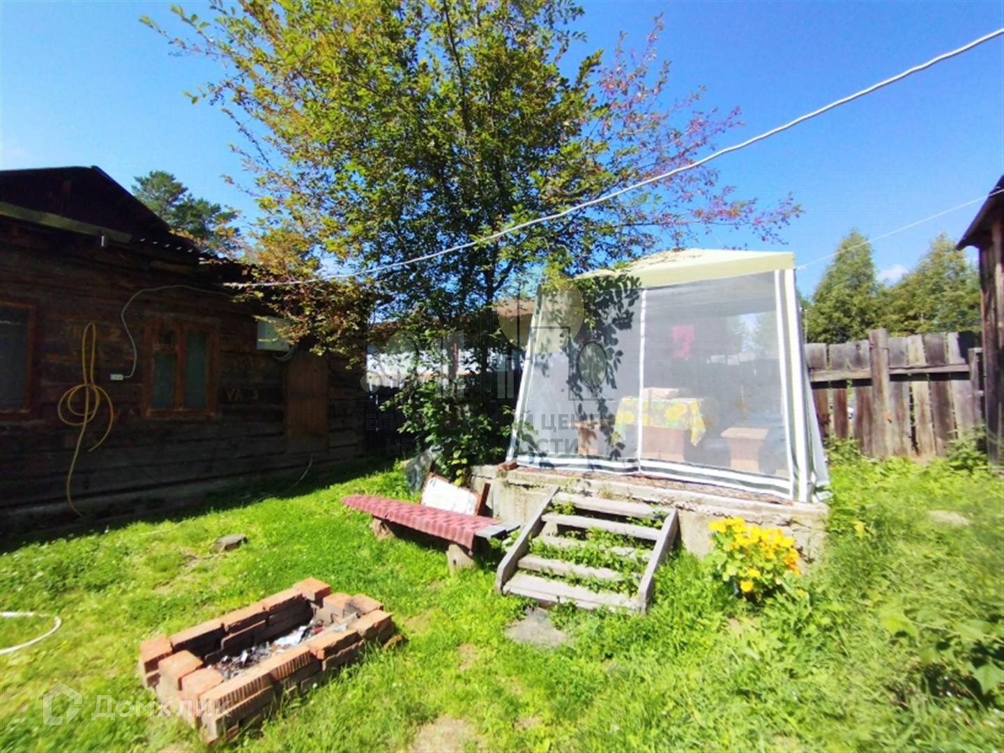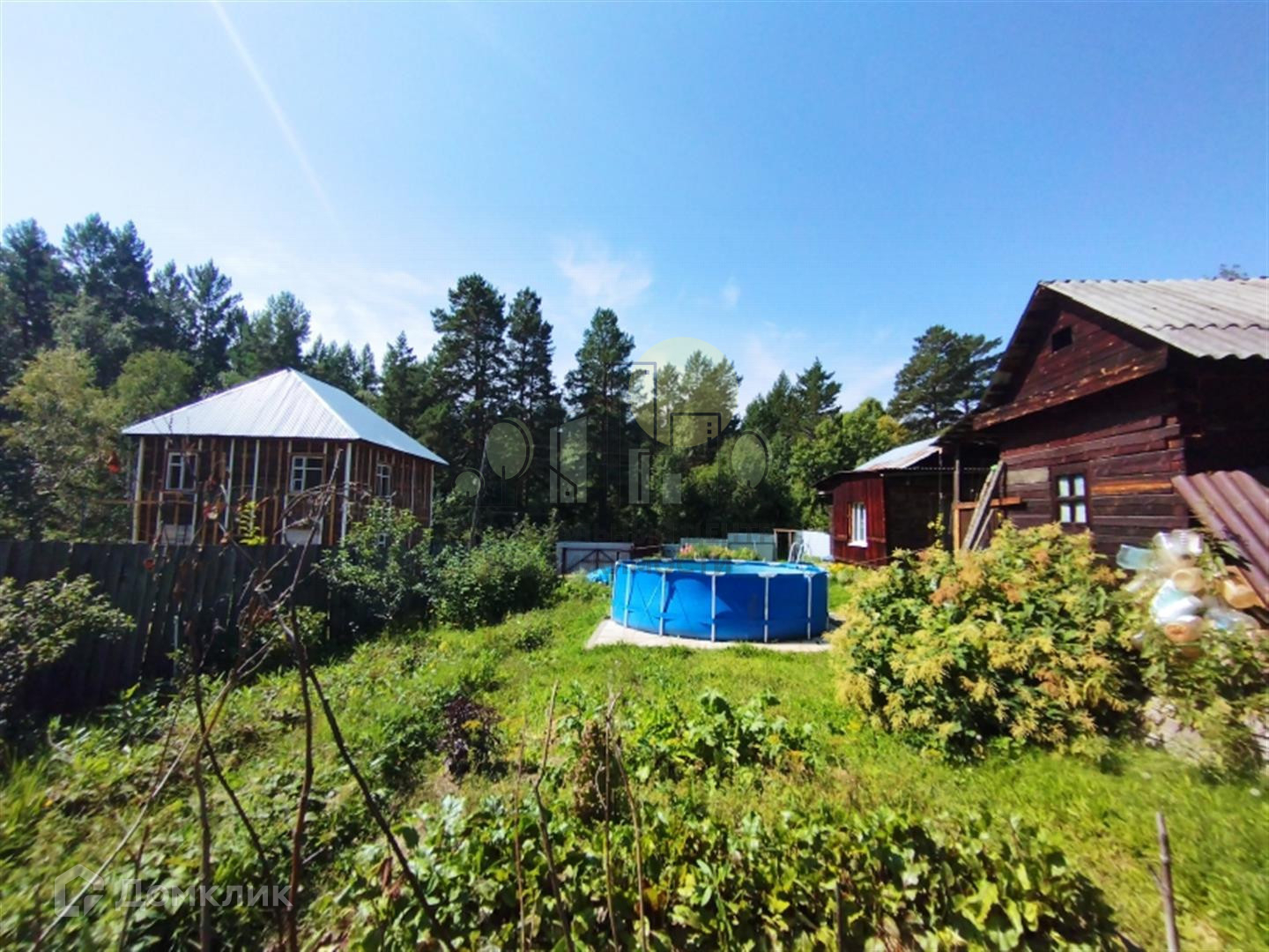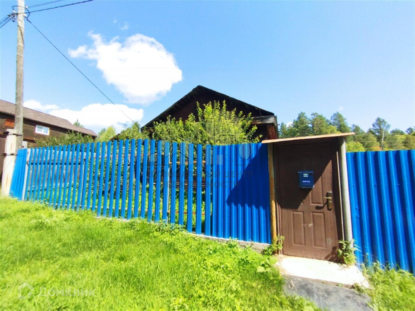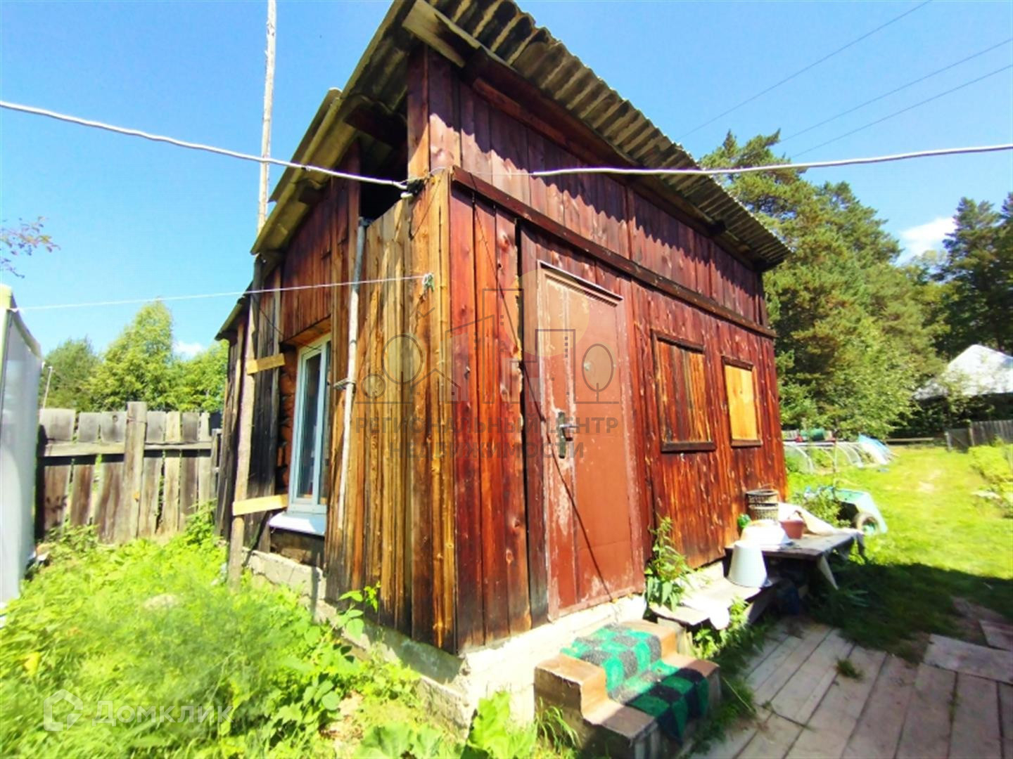 На участке отличная баня из бруса, летний туалет, теплица из поликарбоната, парник. Забор деревянный, фасад из металлического евроштакетника.