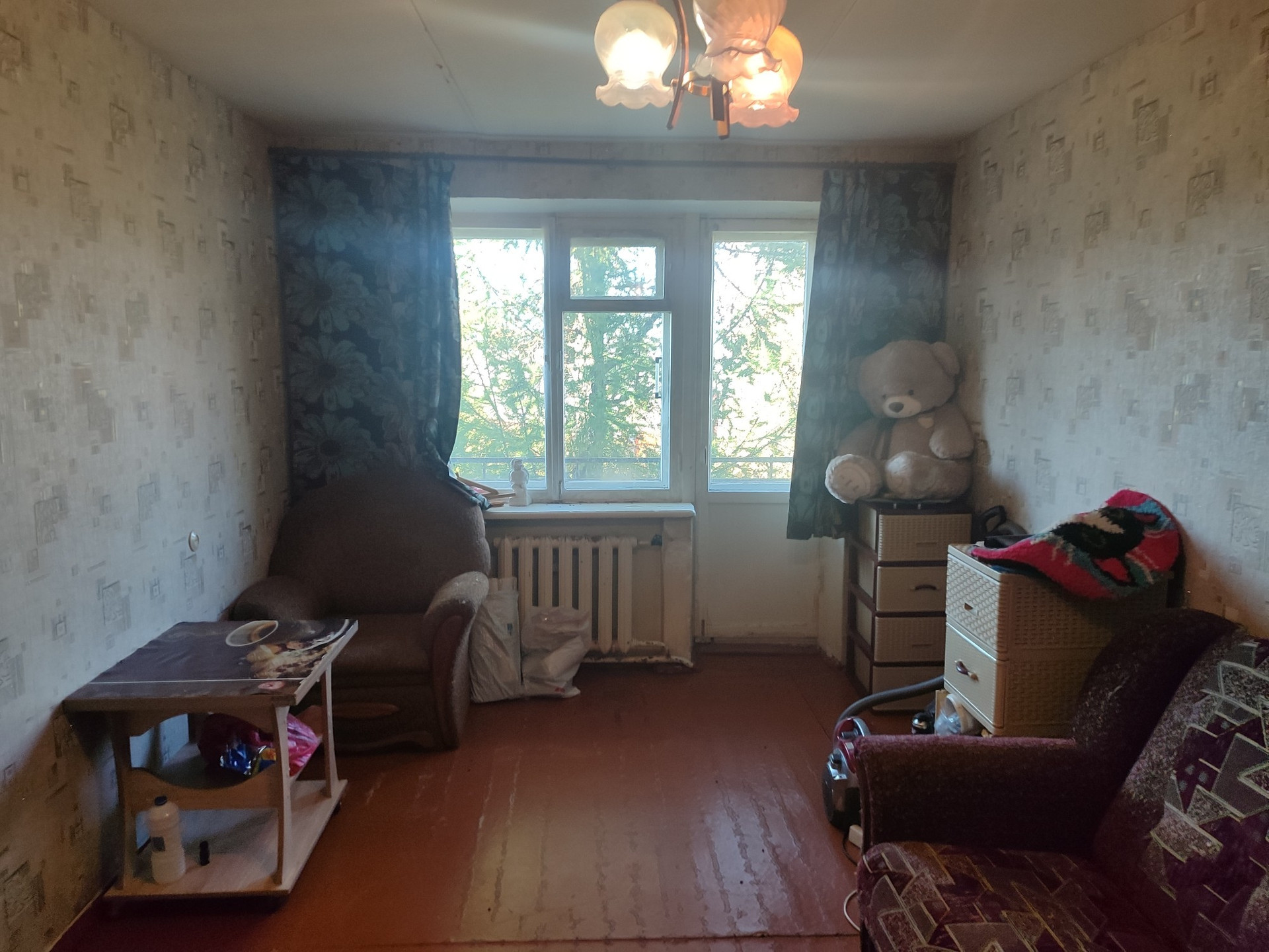 Балкон добавляет дополнительное пространство для отдыха и возможность наслаждаться видами на двор и парк, который находится прямо перед окнами.