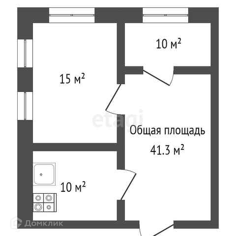 Общая площадь 41.3 м2