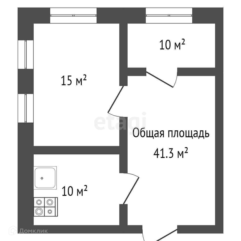 Общая площадь 41.3 м2