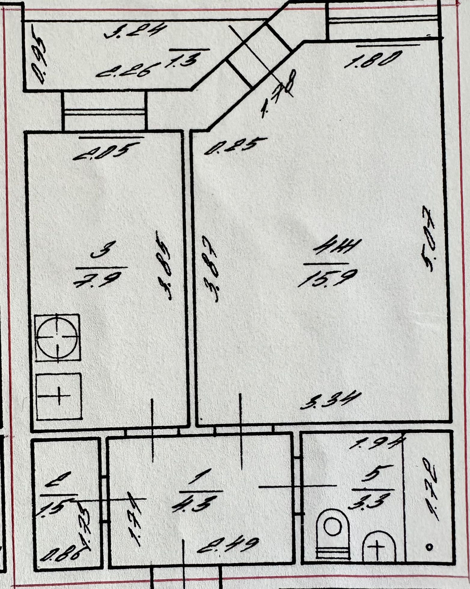 Жилая площадь 15.9 м2