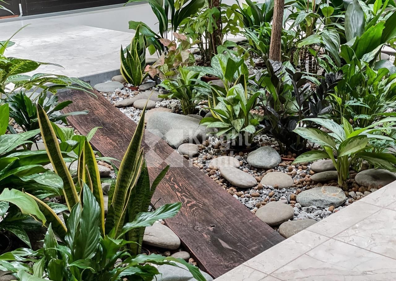 Приватный участок площадью в 25 соток окружен реликтовым лесом. Сам участок полностью изолирован от посторонних глаз, идеальное место для любителей тишины и природы. Забор по границе участка выполнен из лиственницы. Построена закрытая зона BBQ, а также отдельный трехэтажный дом для охраны, площадью 250 м² с бойлерной, помещением для охраны, кухней и комнатой отдыха. По периметру участка смонтированы видеокамеры.