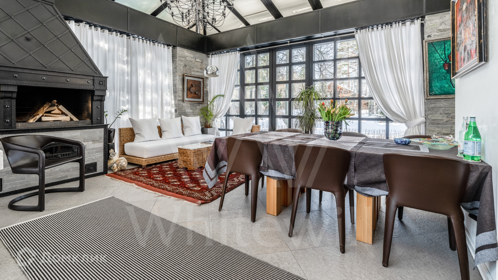 Цоколь: котельная, спортзал, душевая, санузел, бар, домашний кинотеатр, бильярдная, постирочная, винная комната.