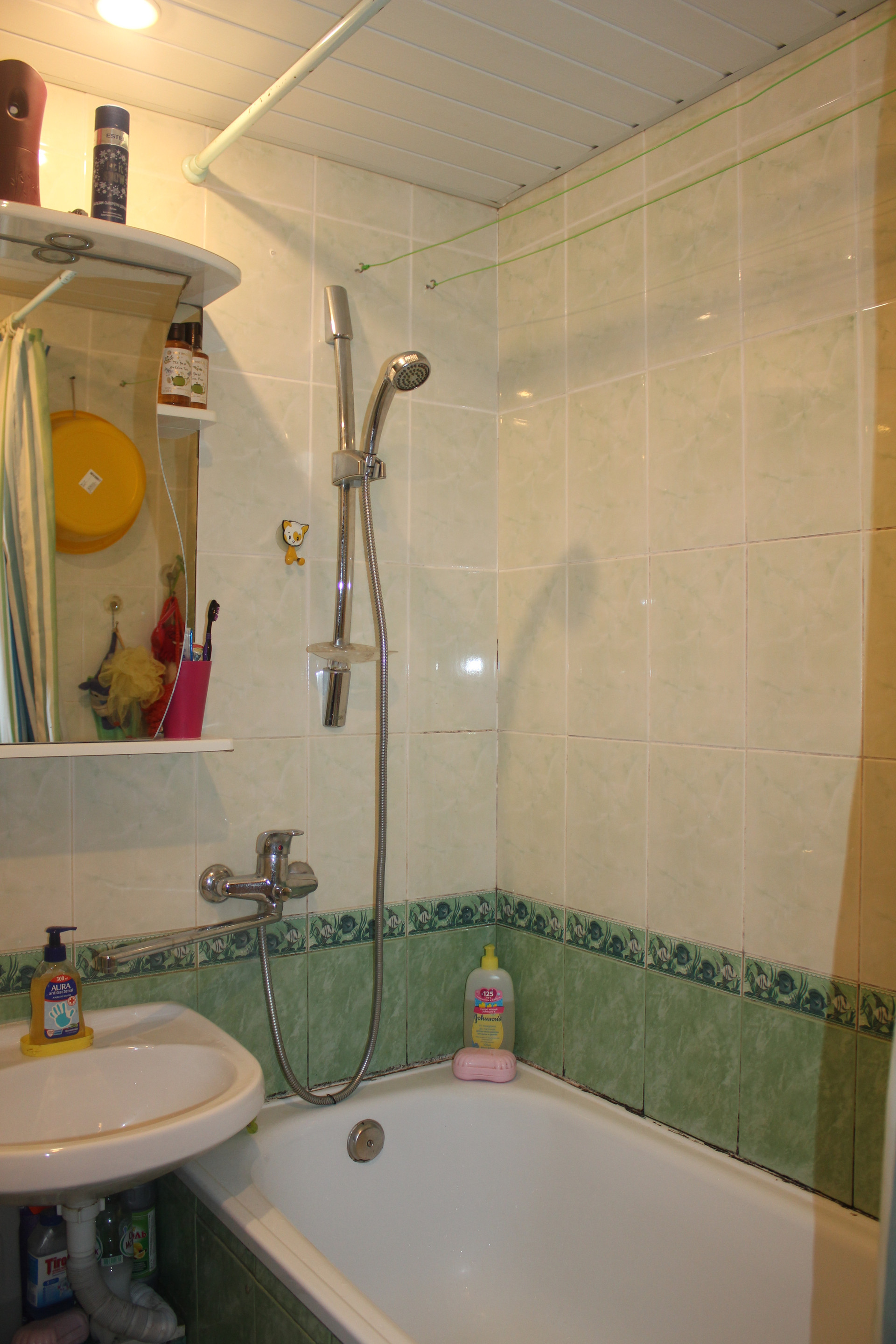 Ванная комната в кафеле,пластиковые трубы,счетчики.