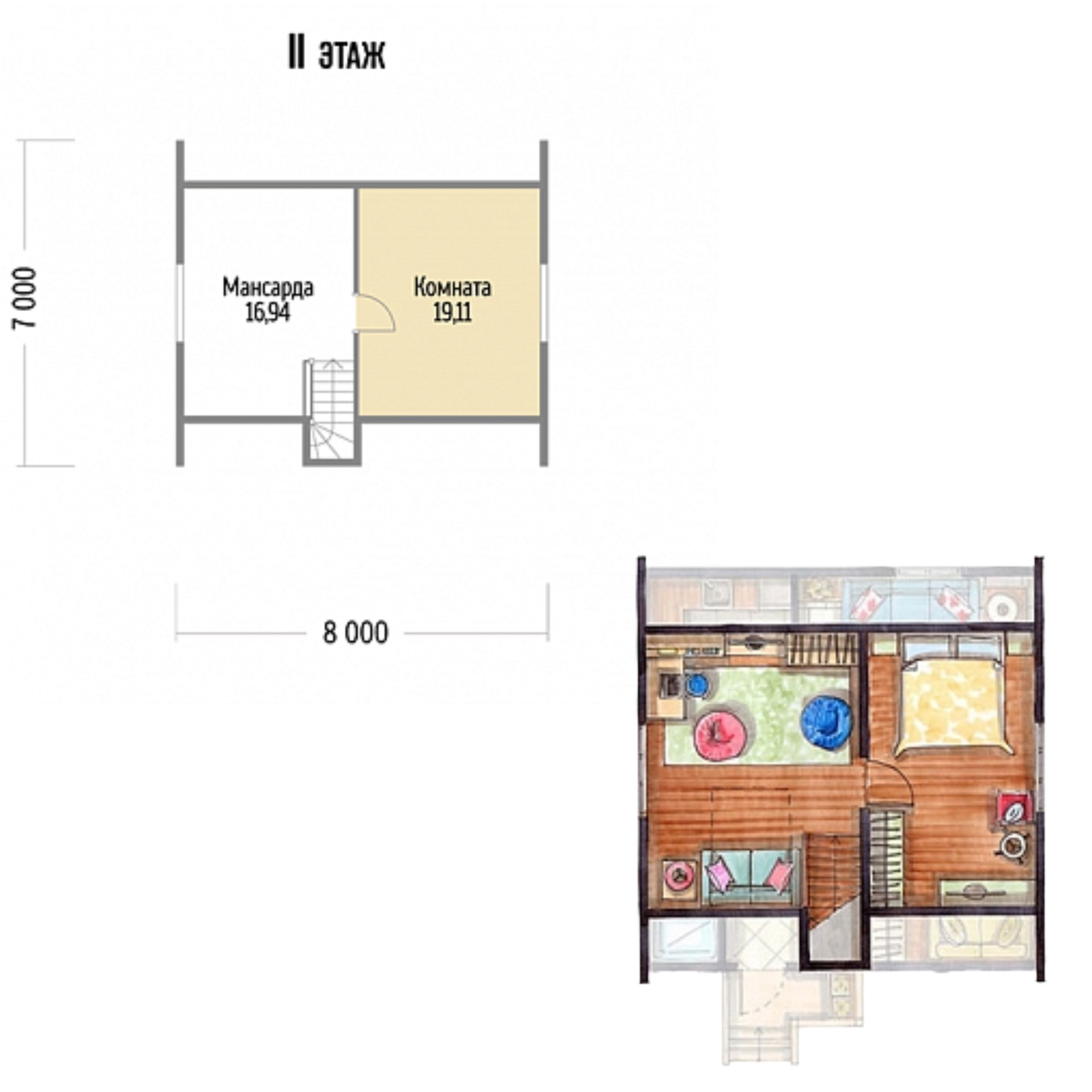 Планировка 2 этаж - две большие комнаты.