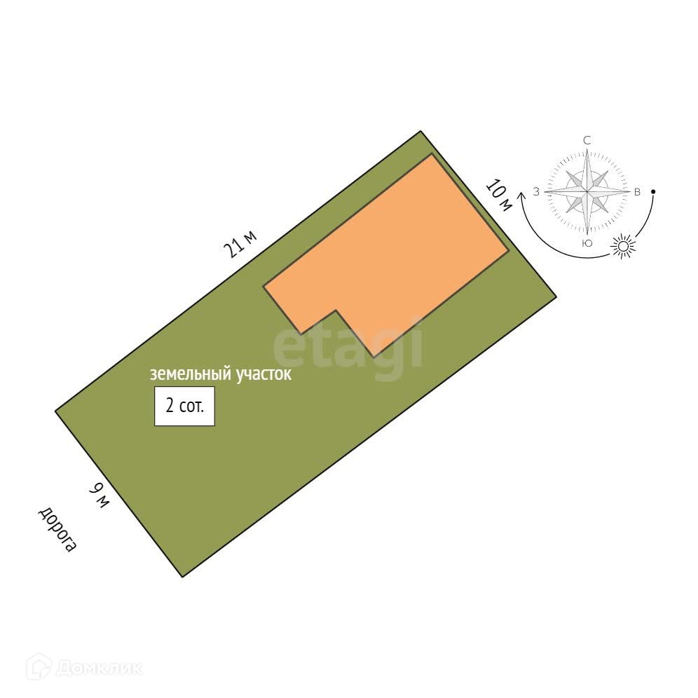 Площадь участка 2 сот.