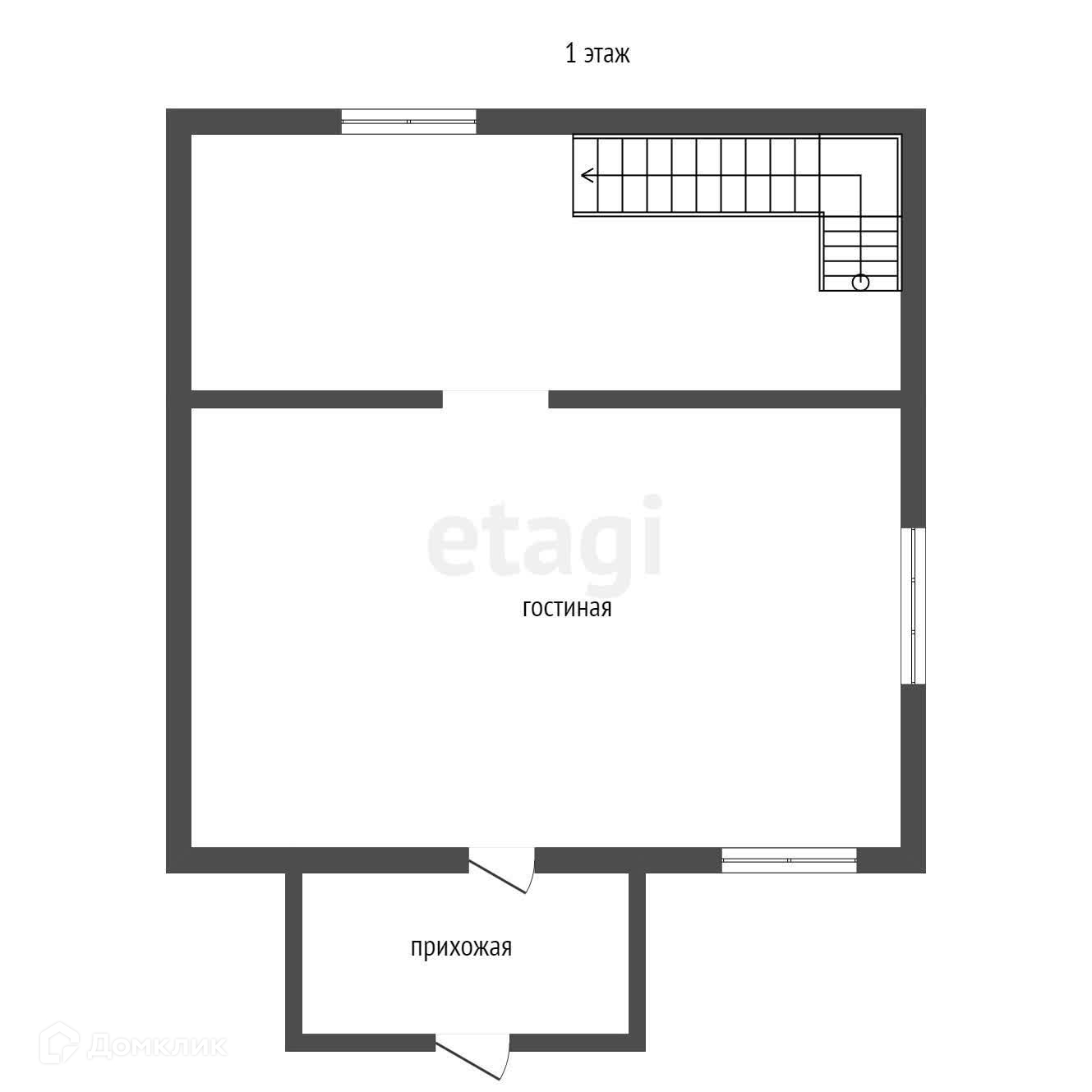 На первом этаже прихожая, просторная кухня-гостиная и санузел с душевой кабиной.