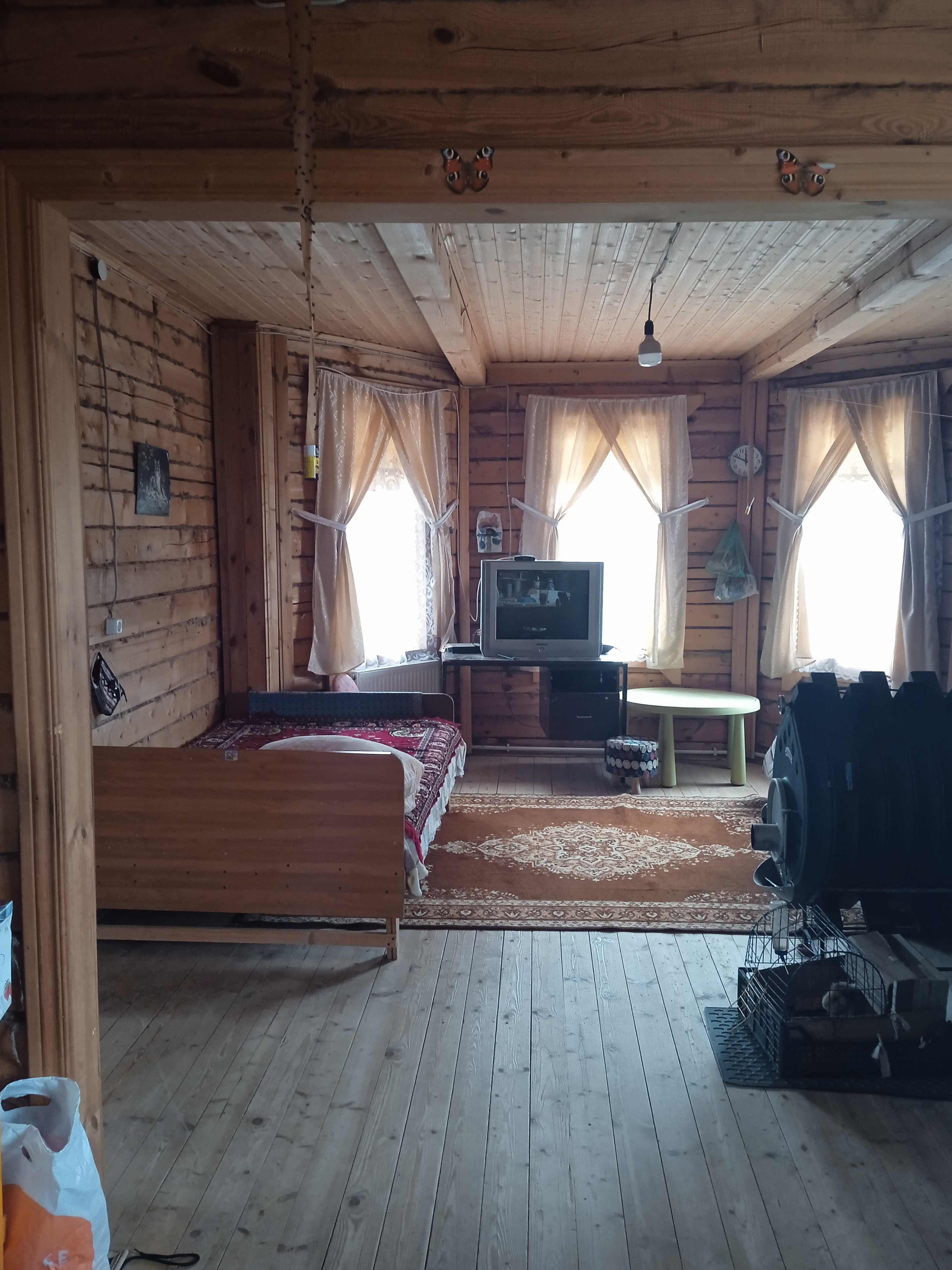 2й этаж- три комнаты и большой удобный хол. Внутренняя отделка осталась под дерево, окна ПВХ.