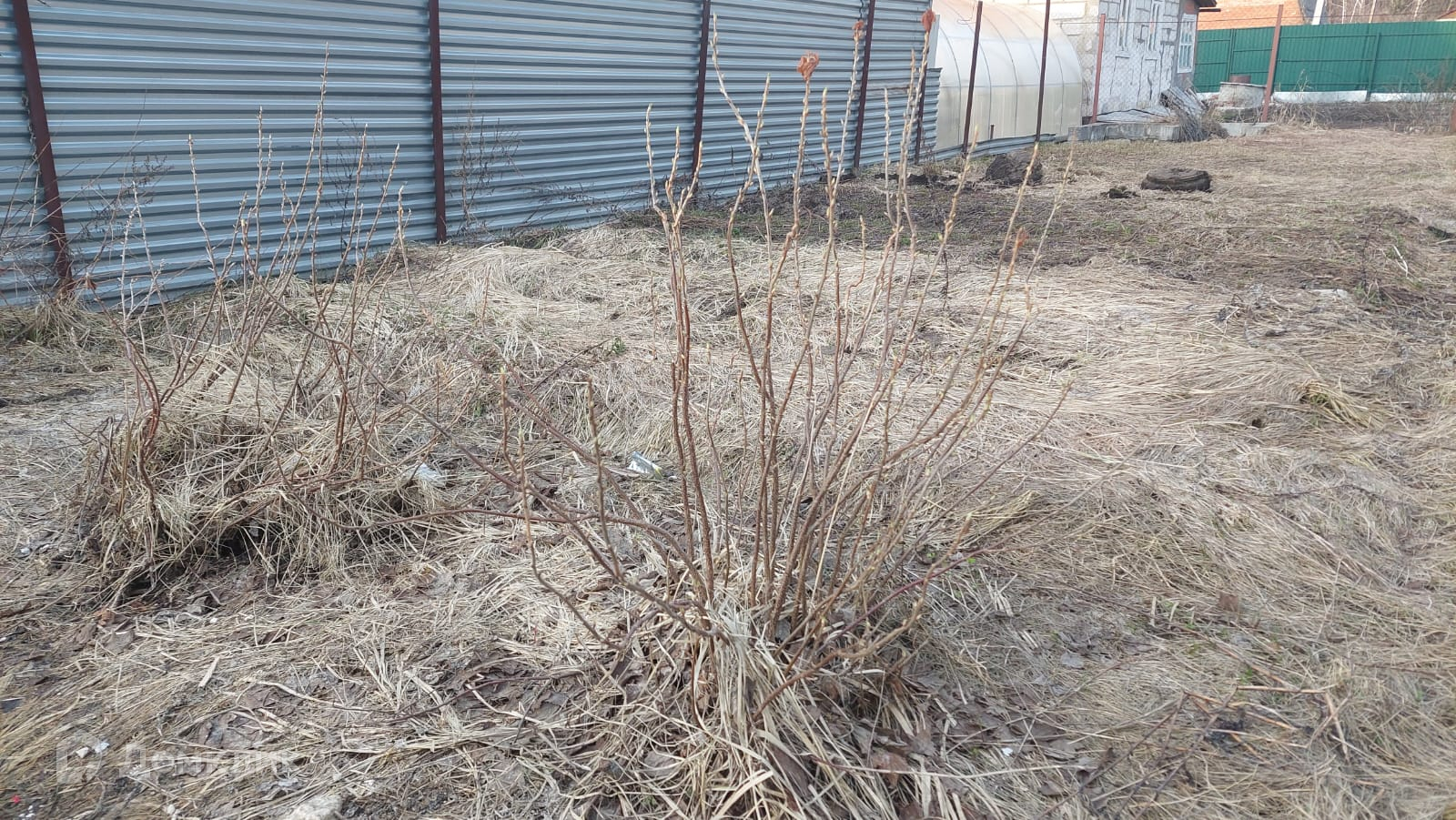 Участок огорожен, сухой, ровный, имеются: два куста красной смородины, клубника,черноплодная рябина.