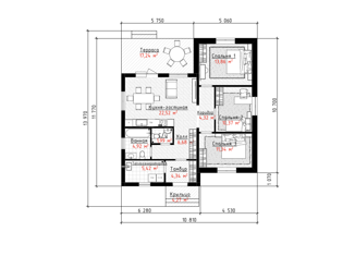 Общая площадь: 100 м2