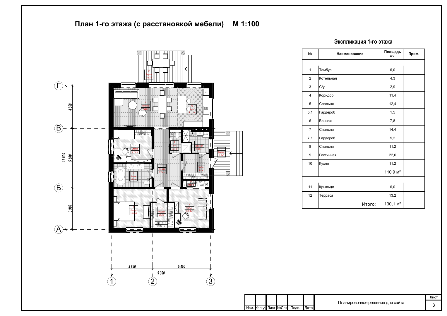 Общая площадь 130 м2