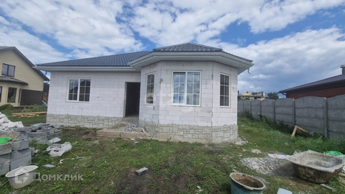 Продам дом в районе Тополек ( Дубовое) 96 кв м.с черновой отделкой. В доме оштукатурены стены( на фото не доделано)черновая стяжка пола,облицовка короед( будет готово на днях).